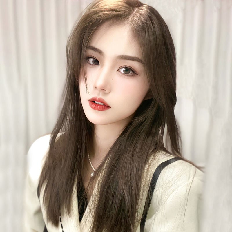 925 Silver Needle Color Diamond Heart Earrings & Natural Black Brown Long Wig with Bangs