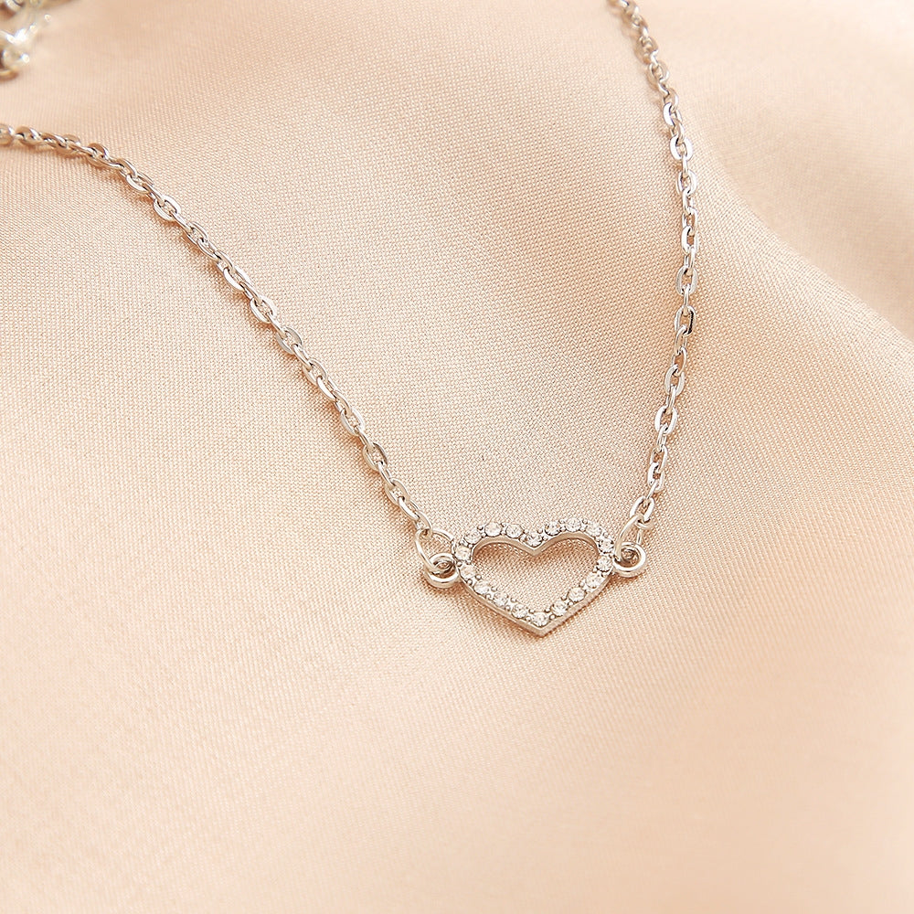 Alloy Plated Heart Pendant Necklace with Zirconia for Women
