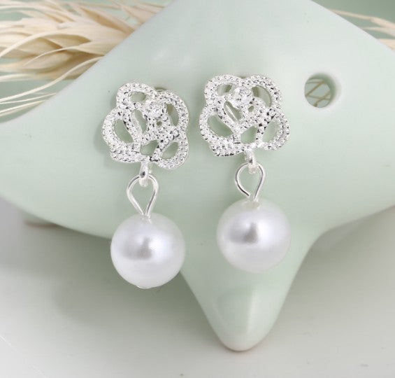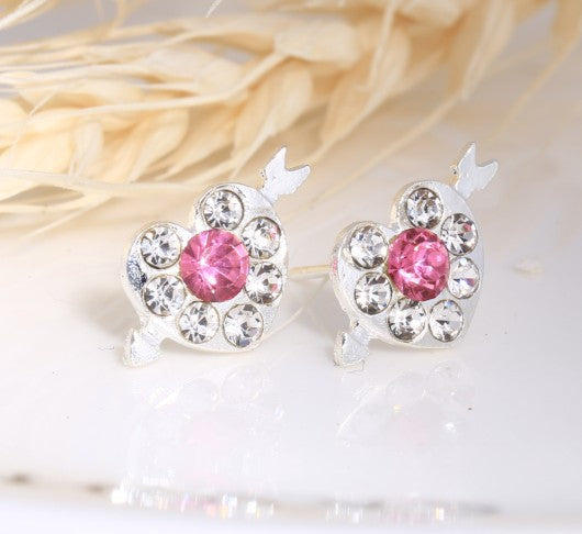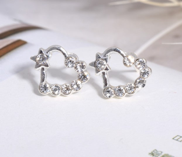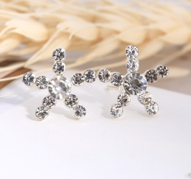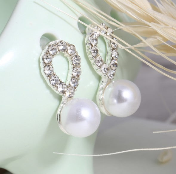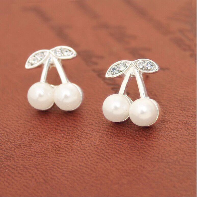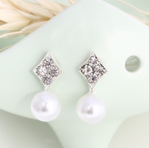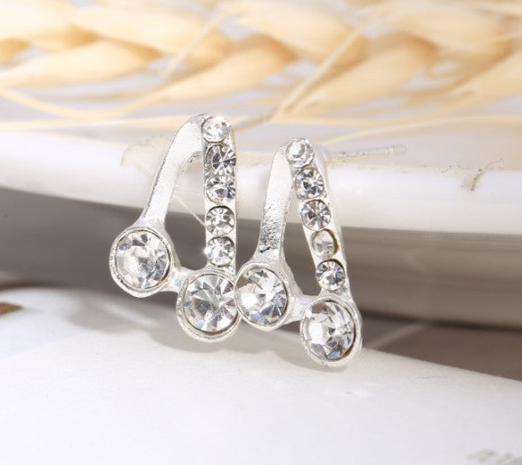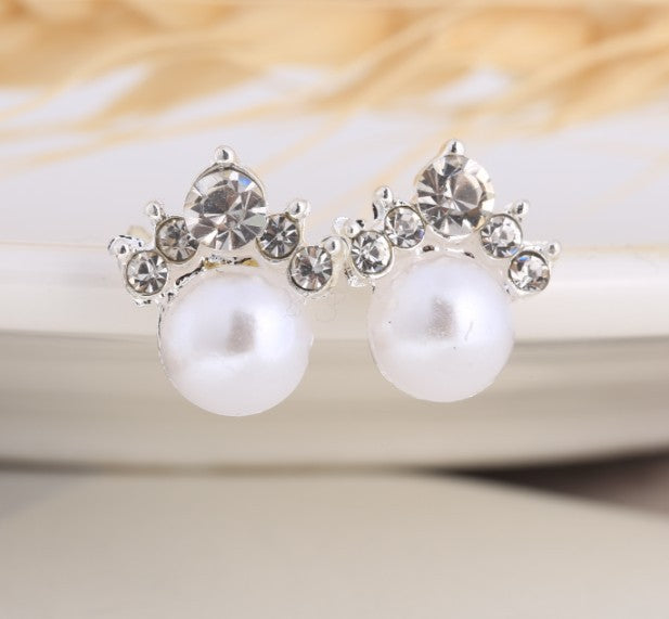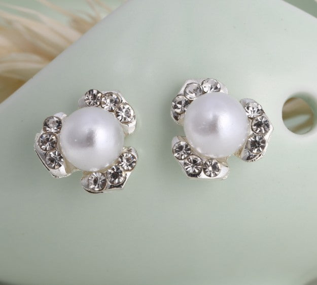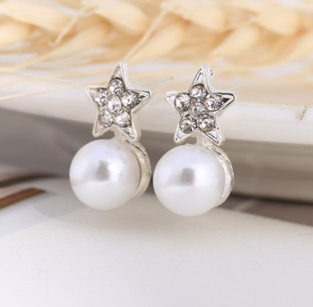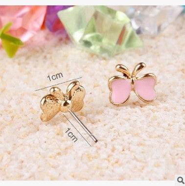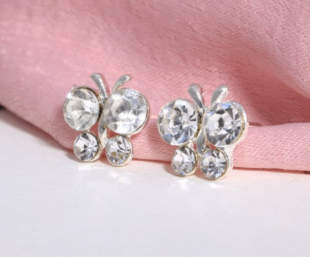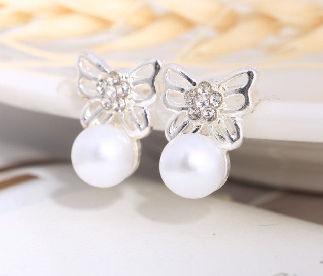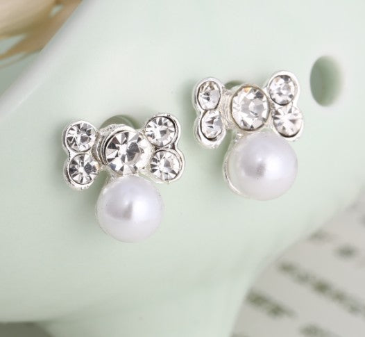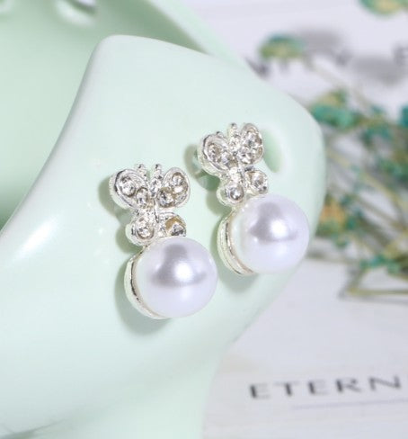 Asymmetric Rhinestone & Pearl Butterfly Stud Earrings - Korean Fashion Trend