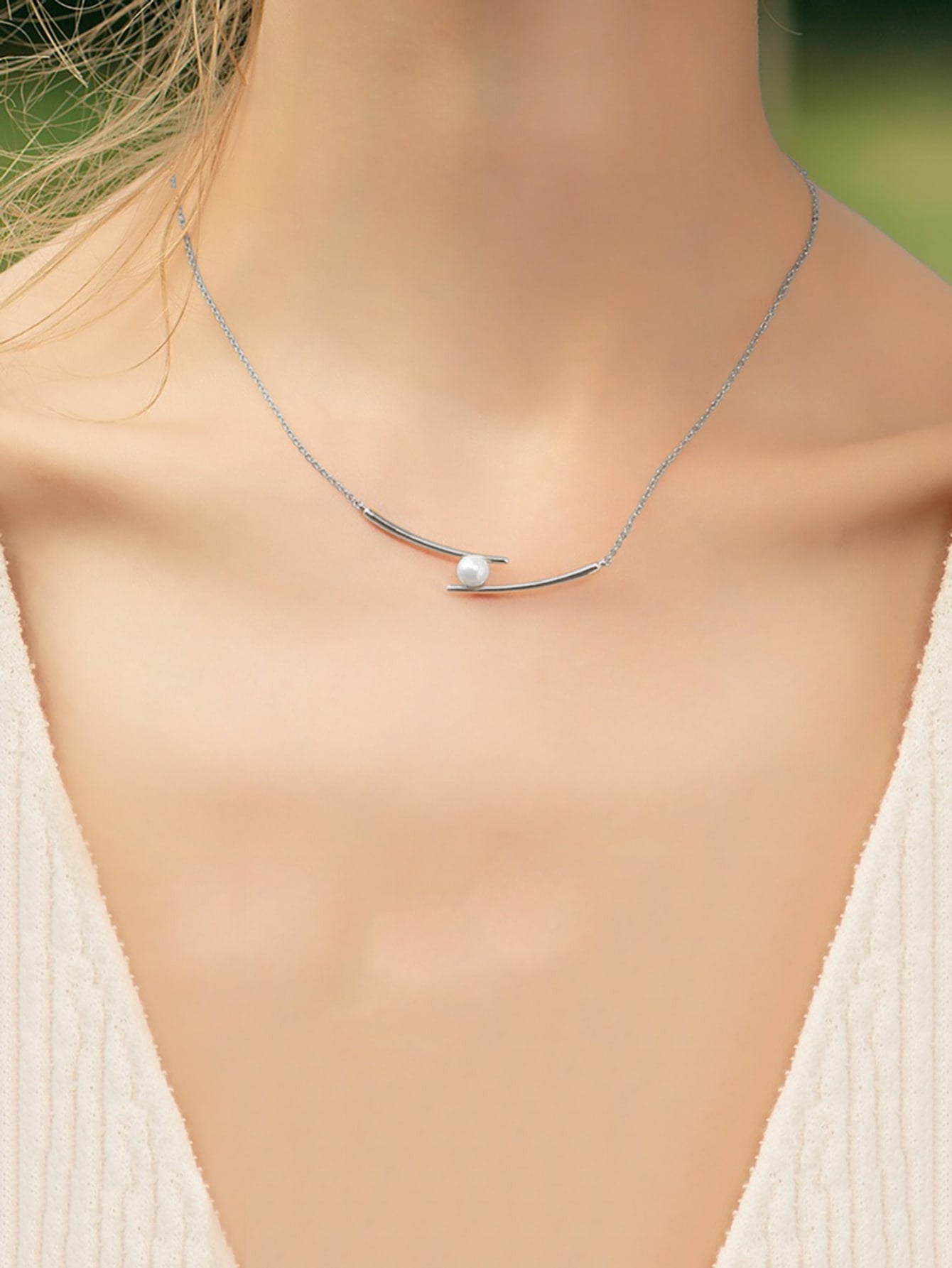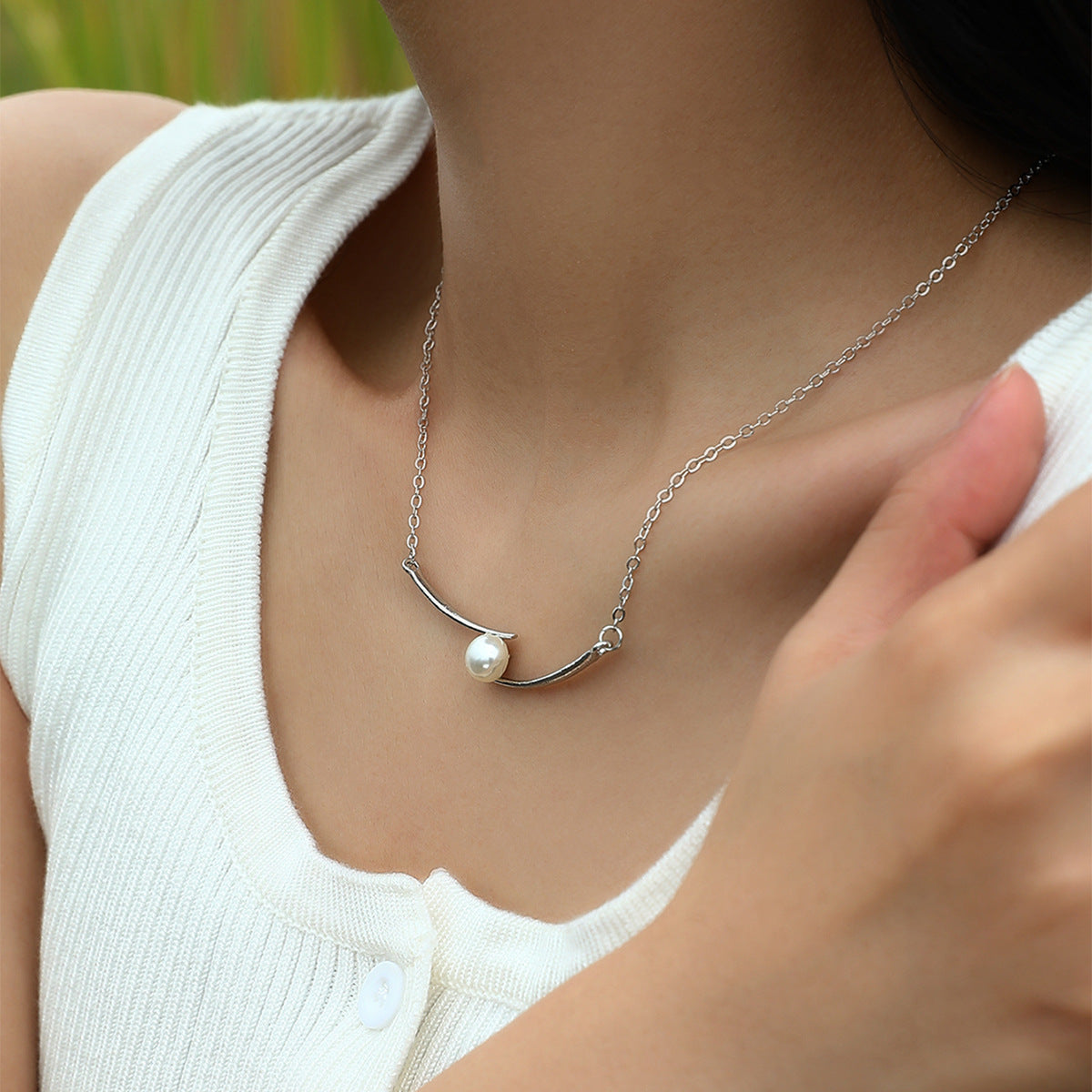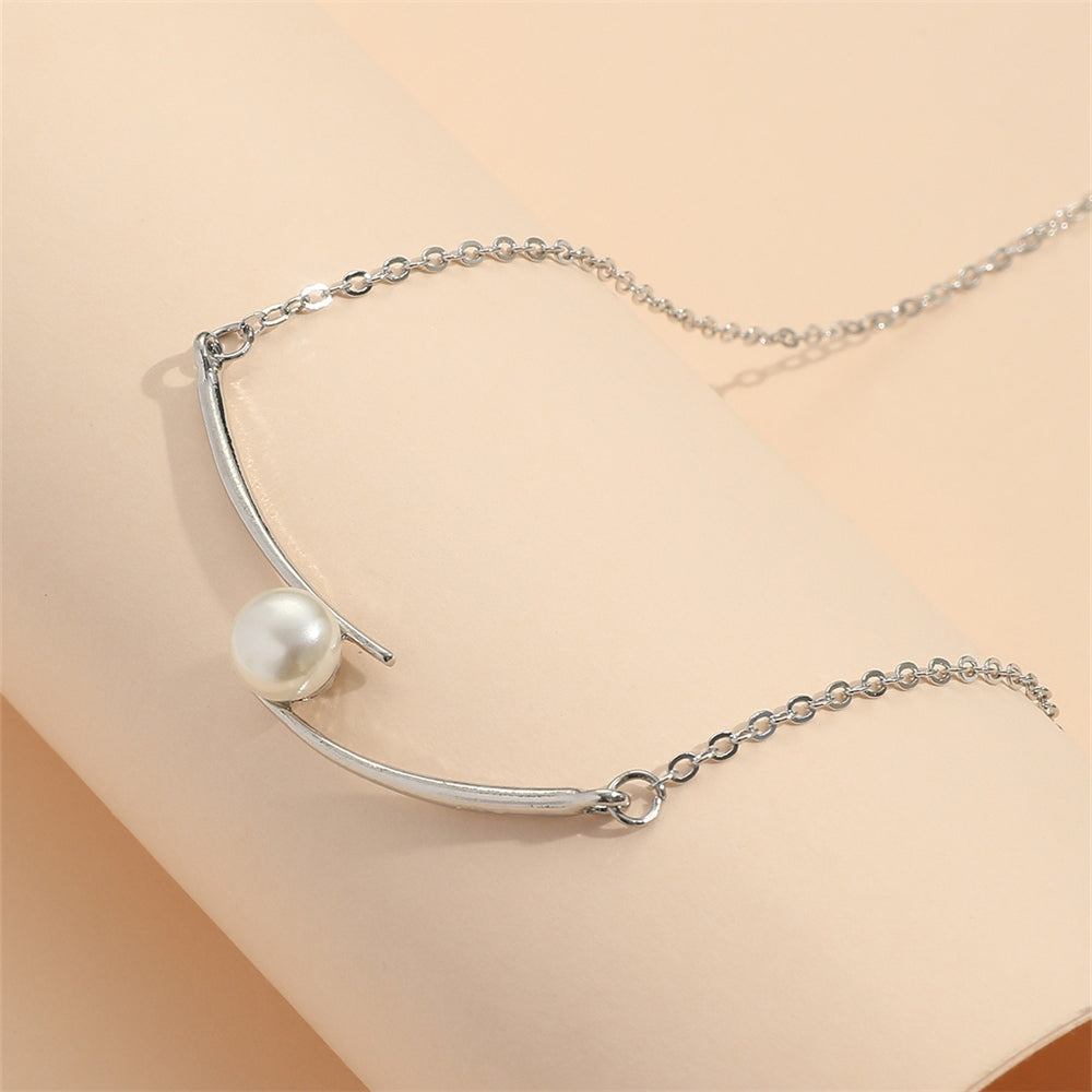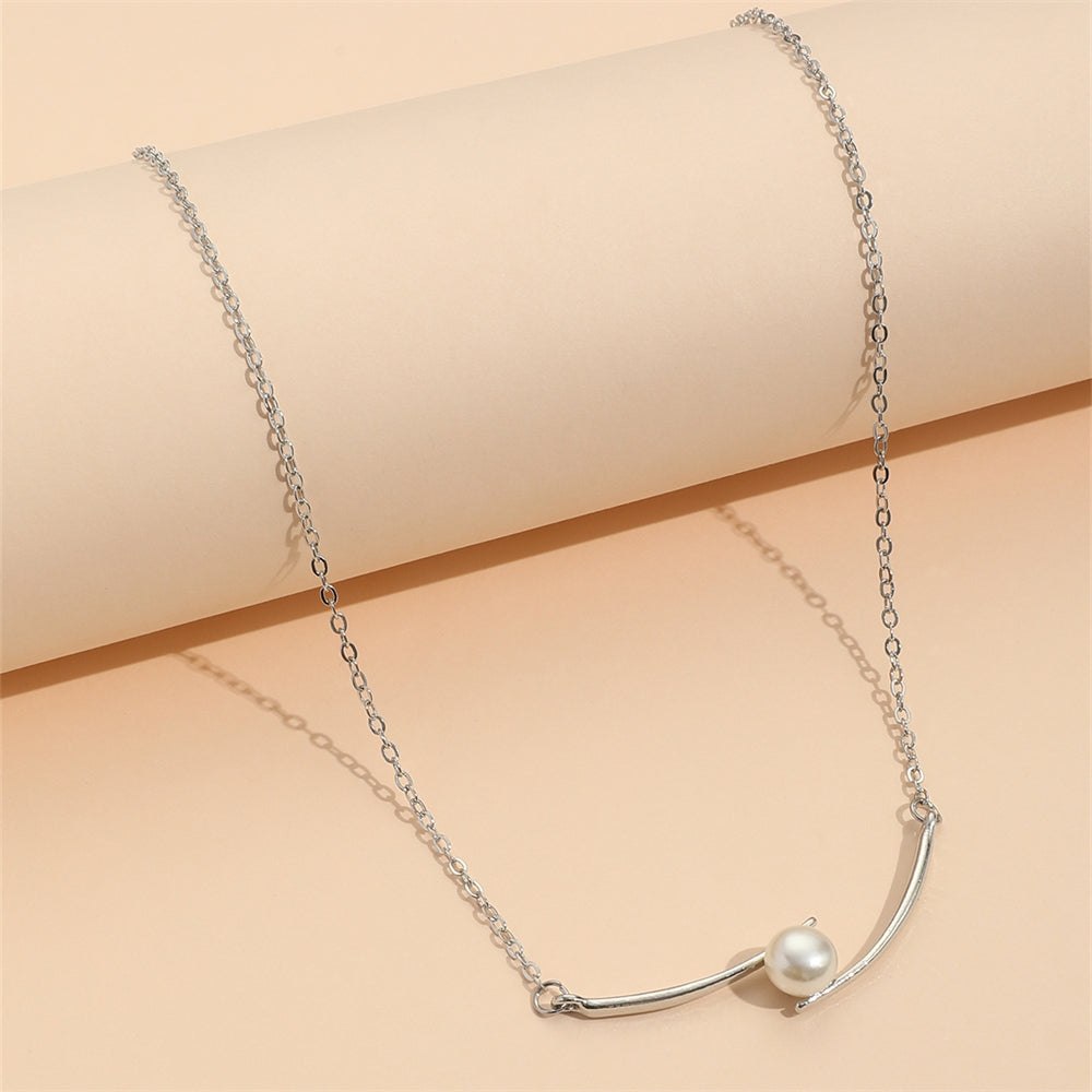 Basic Geometric Imitation Pearl Alloy Necklace with Star Pendant