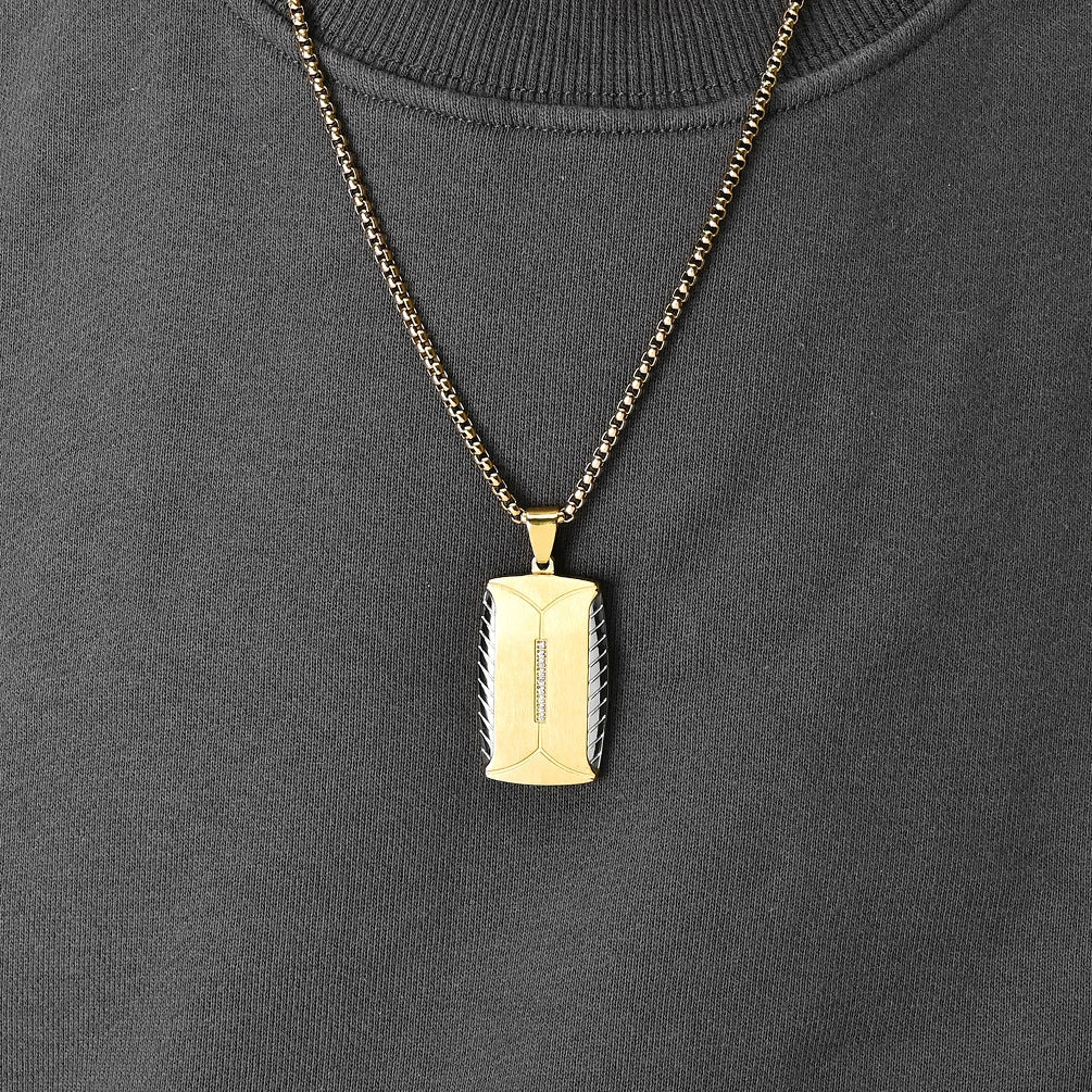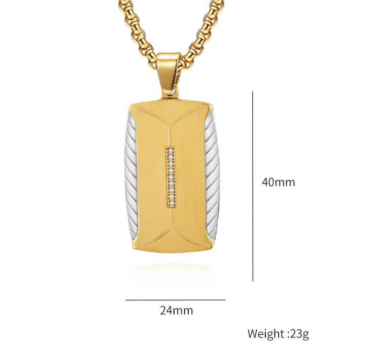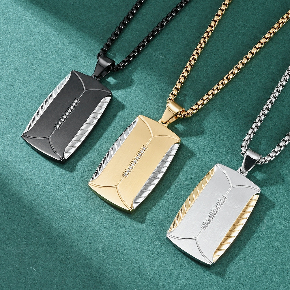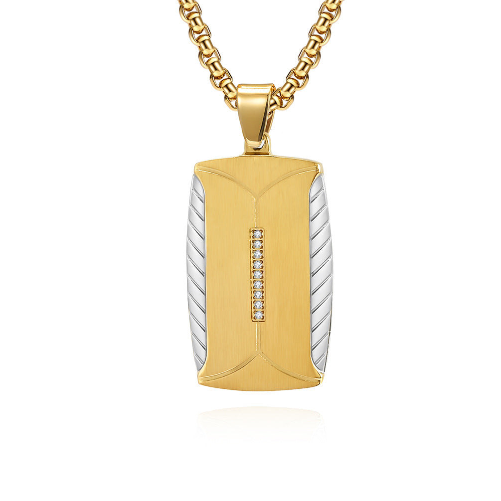 Basic Geometric Titanium Steel Plated Men's Pendant Necklace with Tire Pattern and Stone Inlay