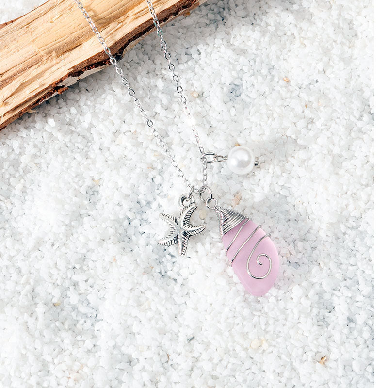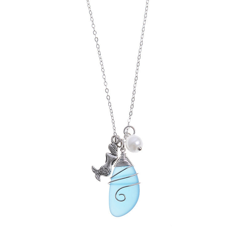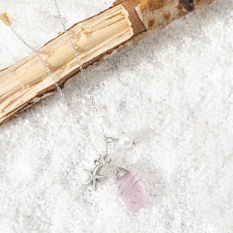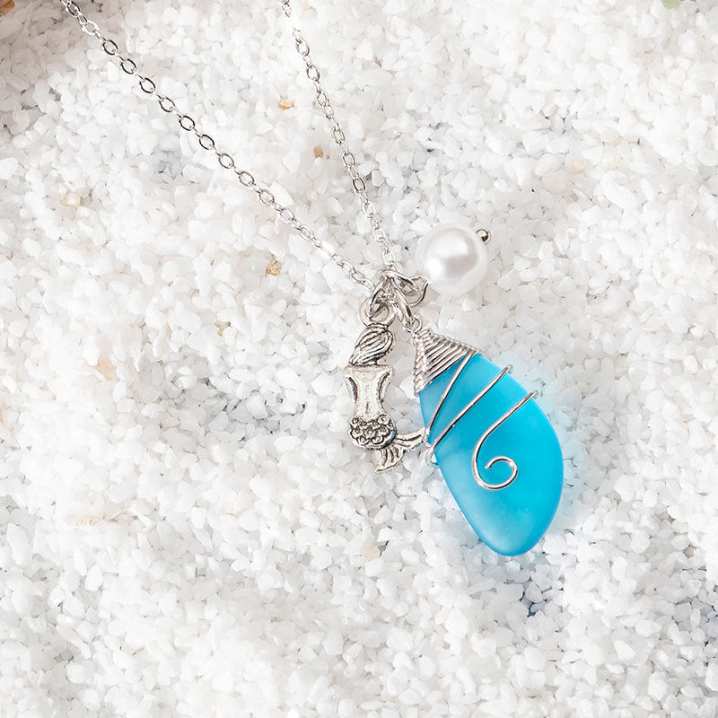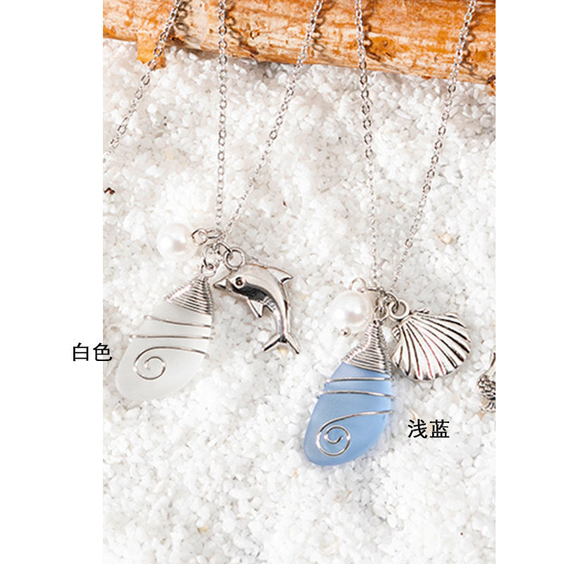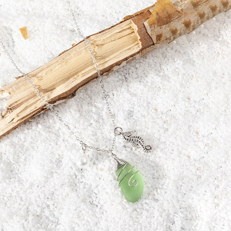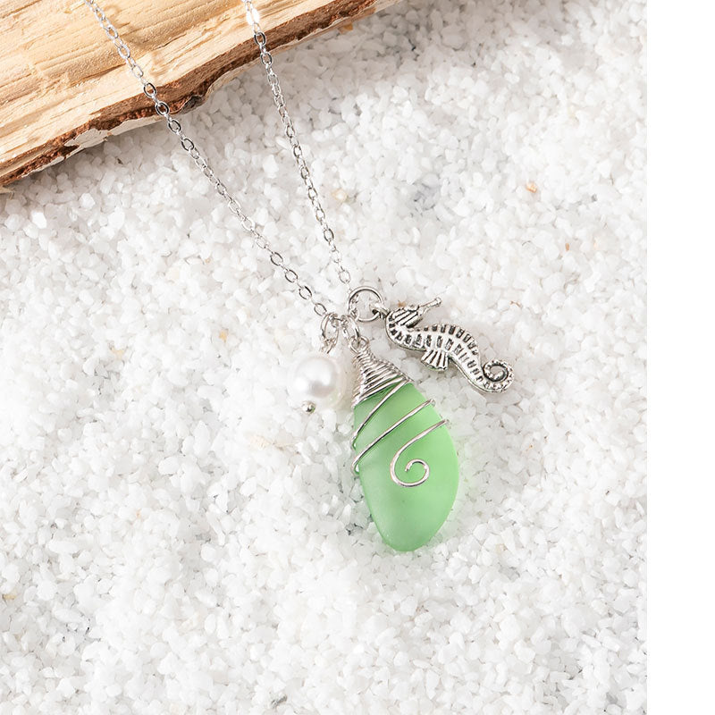 Beach Seashore Alloy Glass Sea Turtle Pendant Necklace for Women
