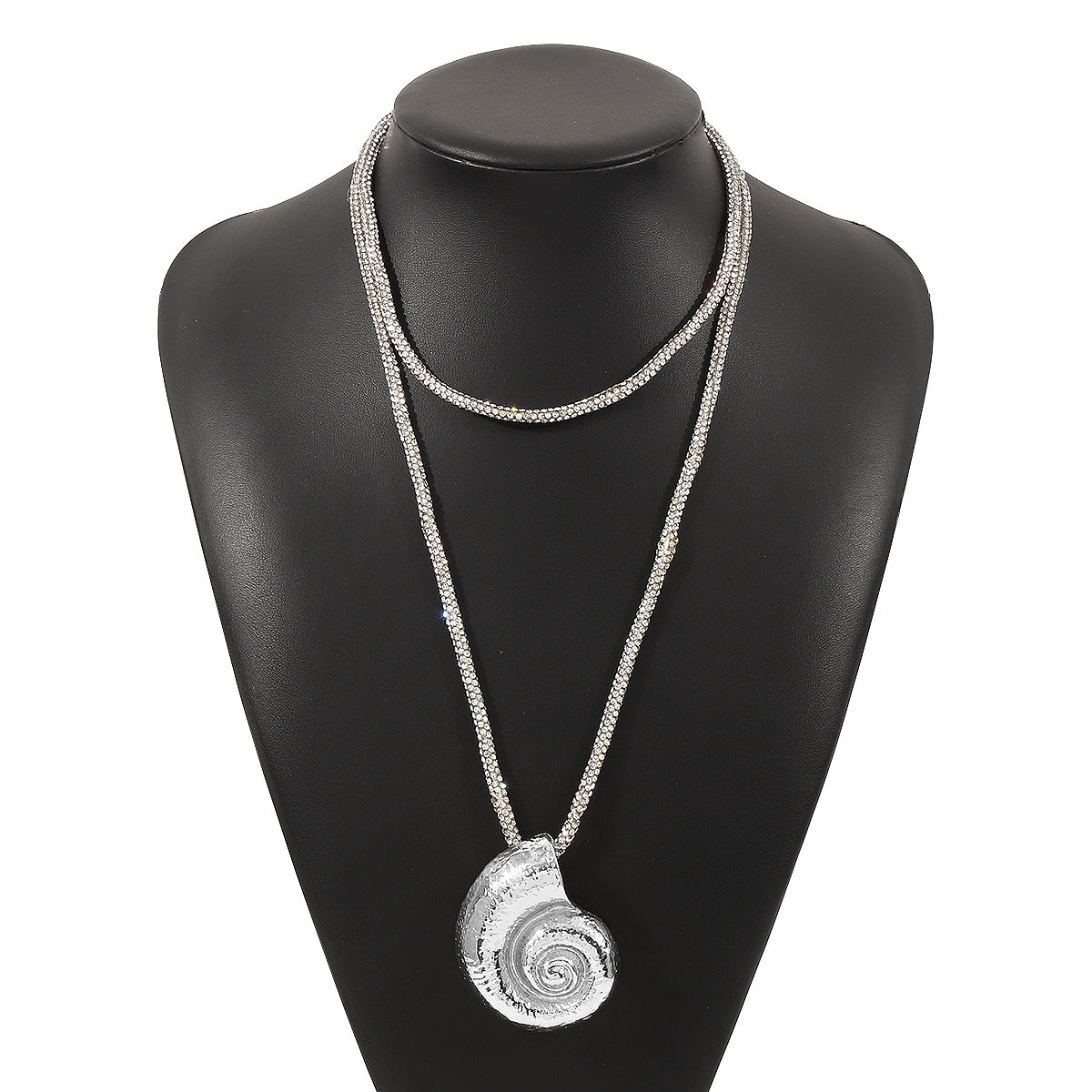 Beach Style Conch Alloy Rhinestone Pendant Necklace