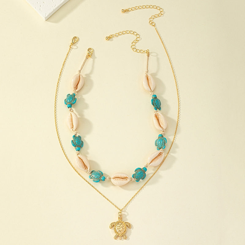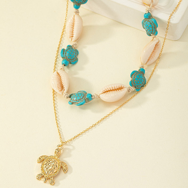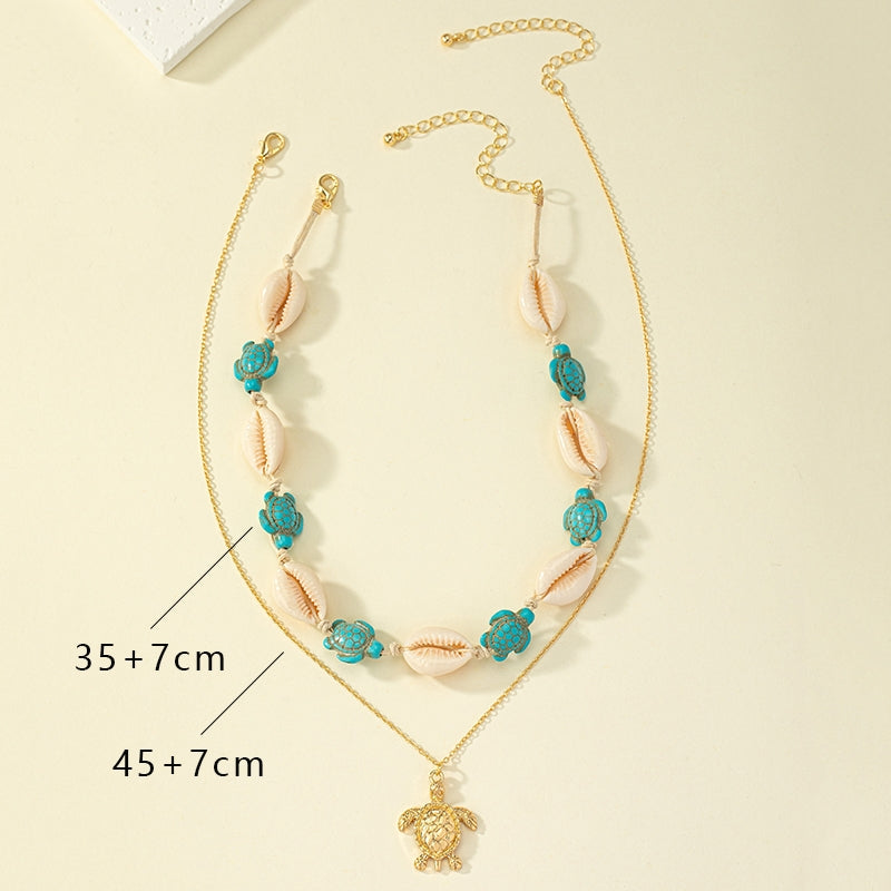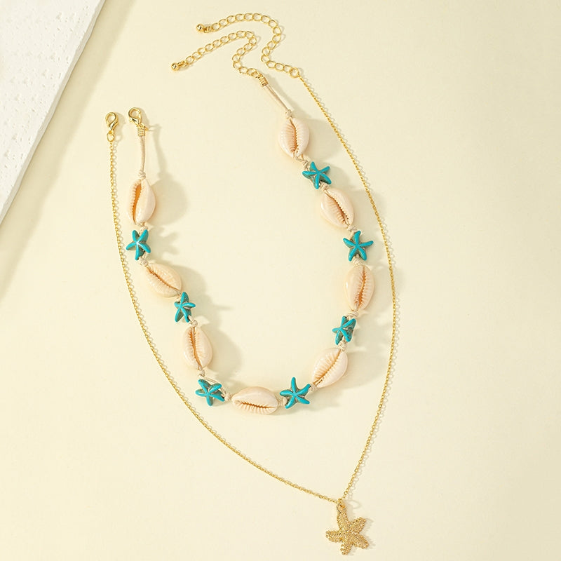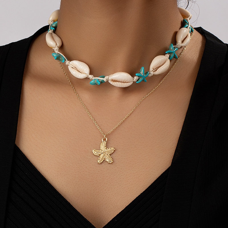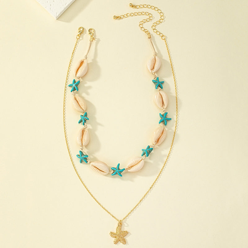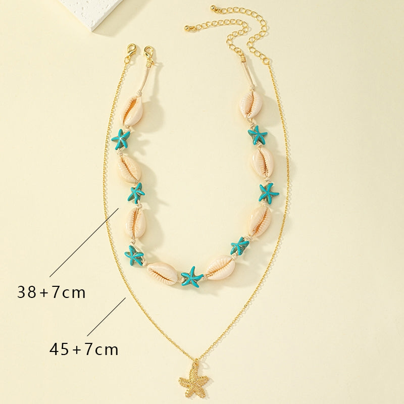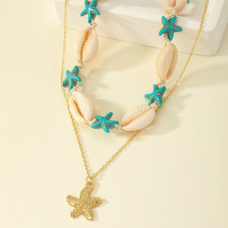 Beach Tropical Tortoise Starfish Shell Pendant Necklace - Vintage Layered Style for Women