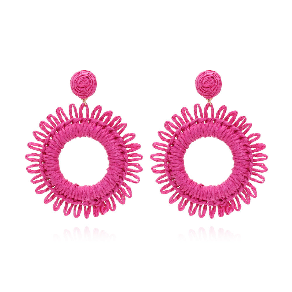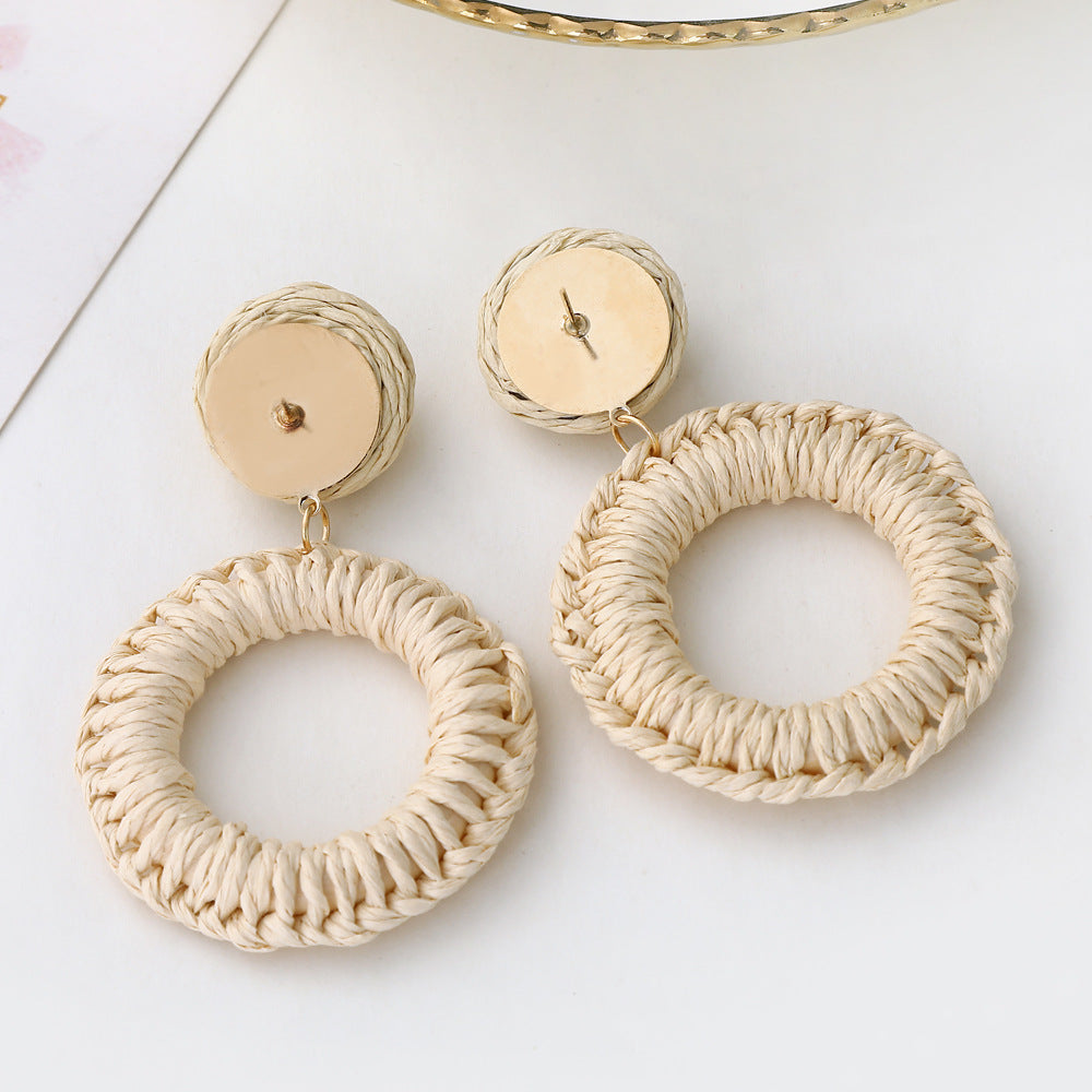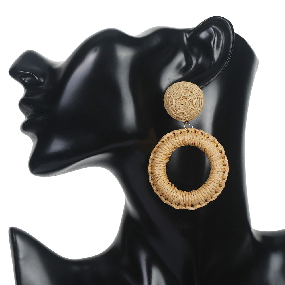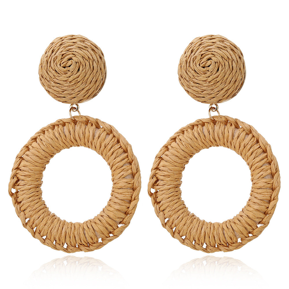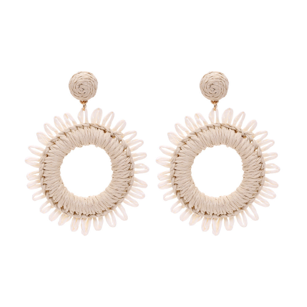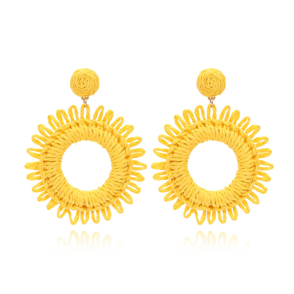 Bohemian Handmade Rattan Sunflower Circular Earrings
