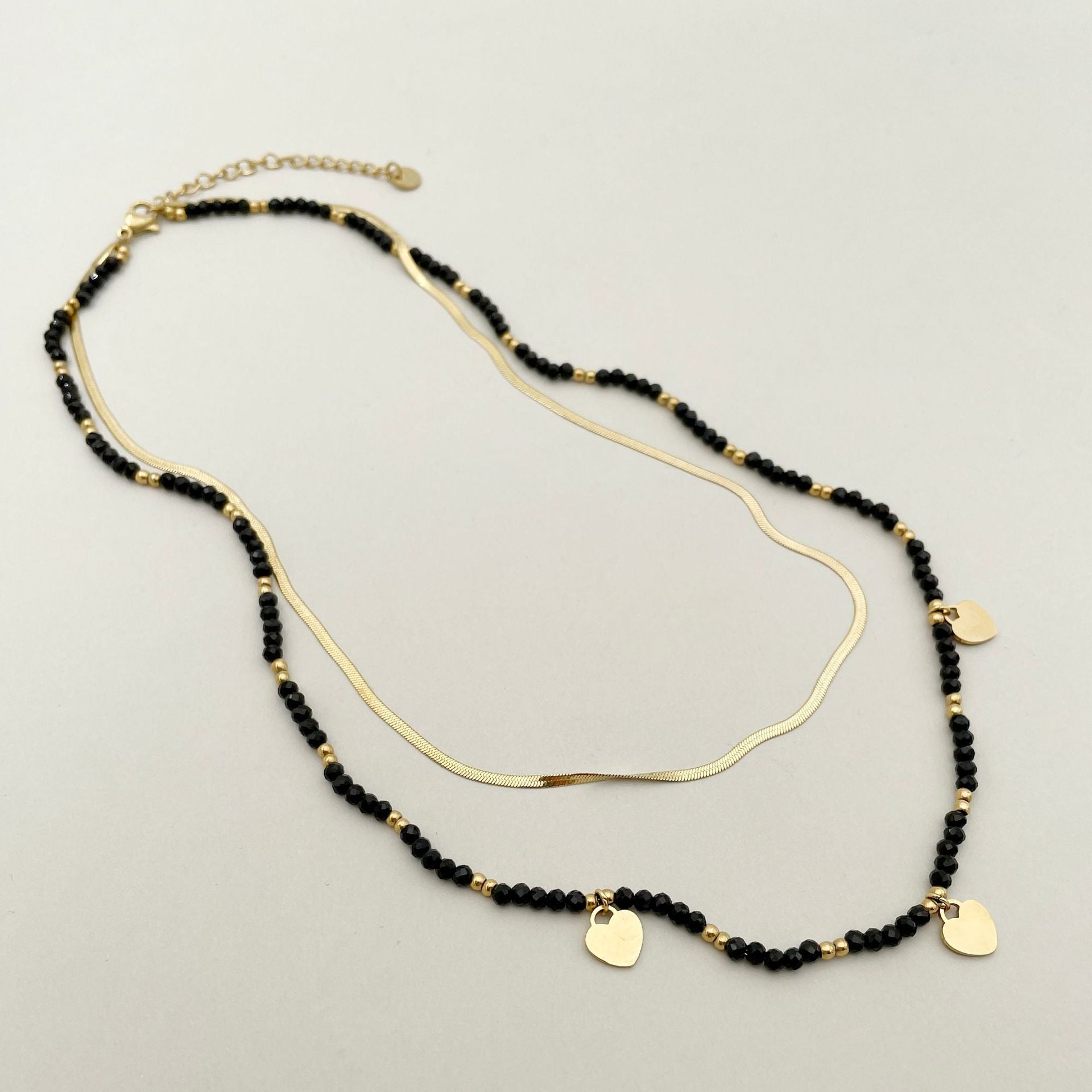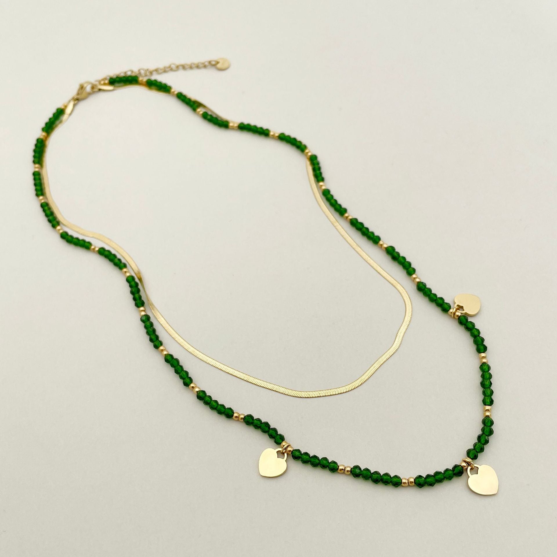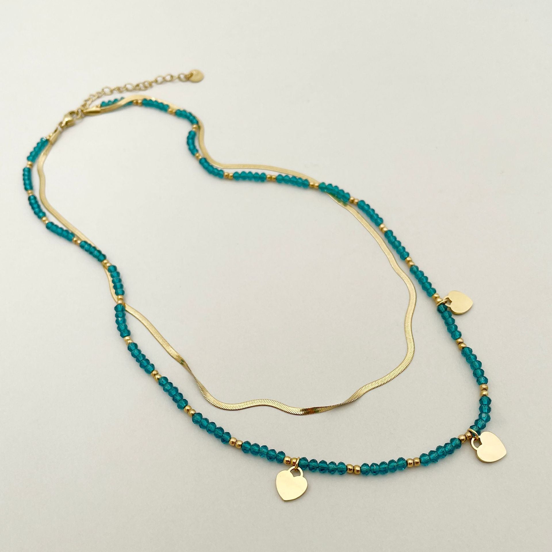 Bohemian Double Layer Heart Crystal Pendant Stainless Steel Necklace