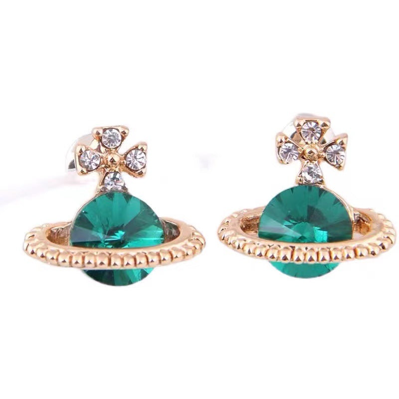 Boutique Korean Fashion Green Saturn Stud Earrings