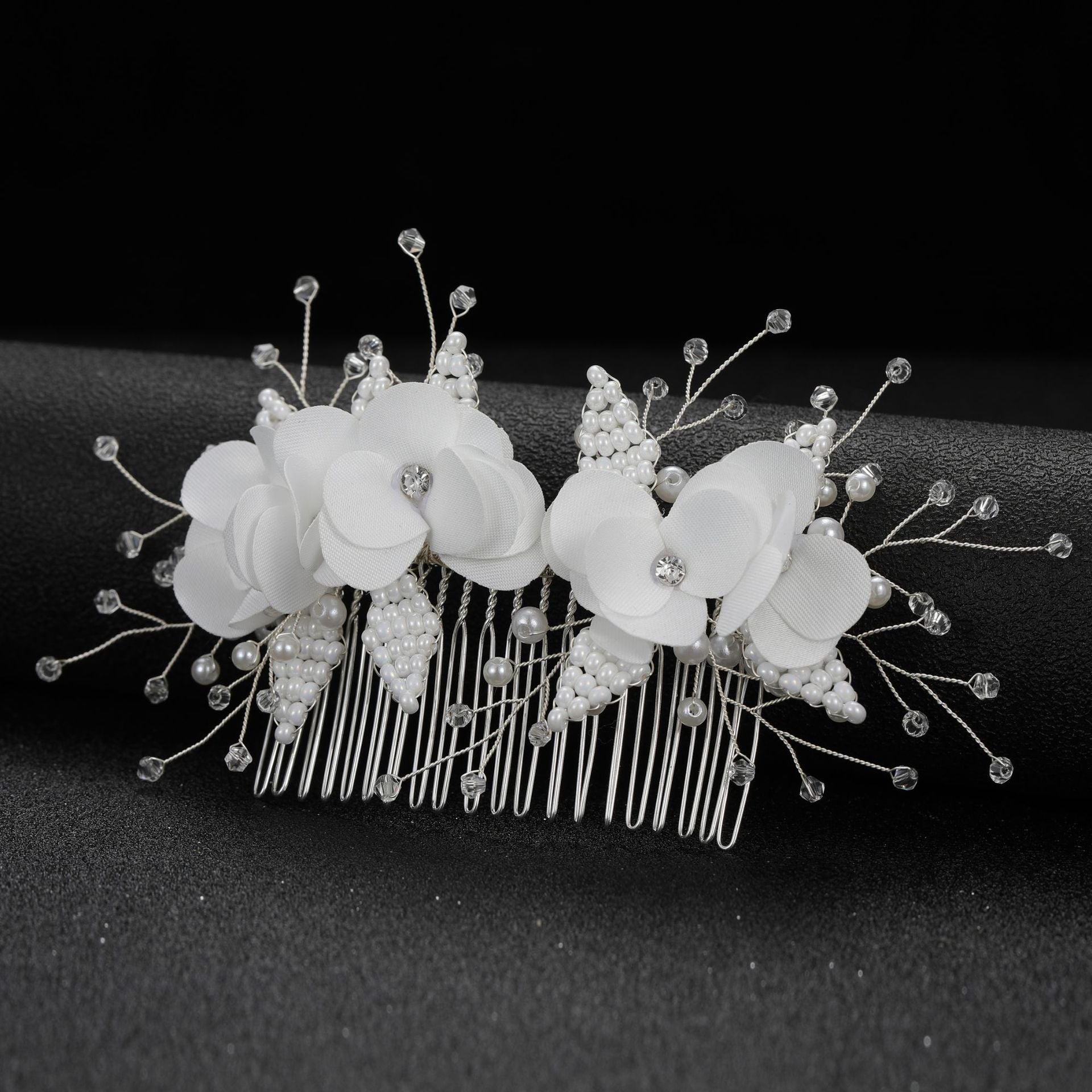 Bridal Floral Hair Comb with Pearl Beads Wedding Accessories