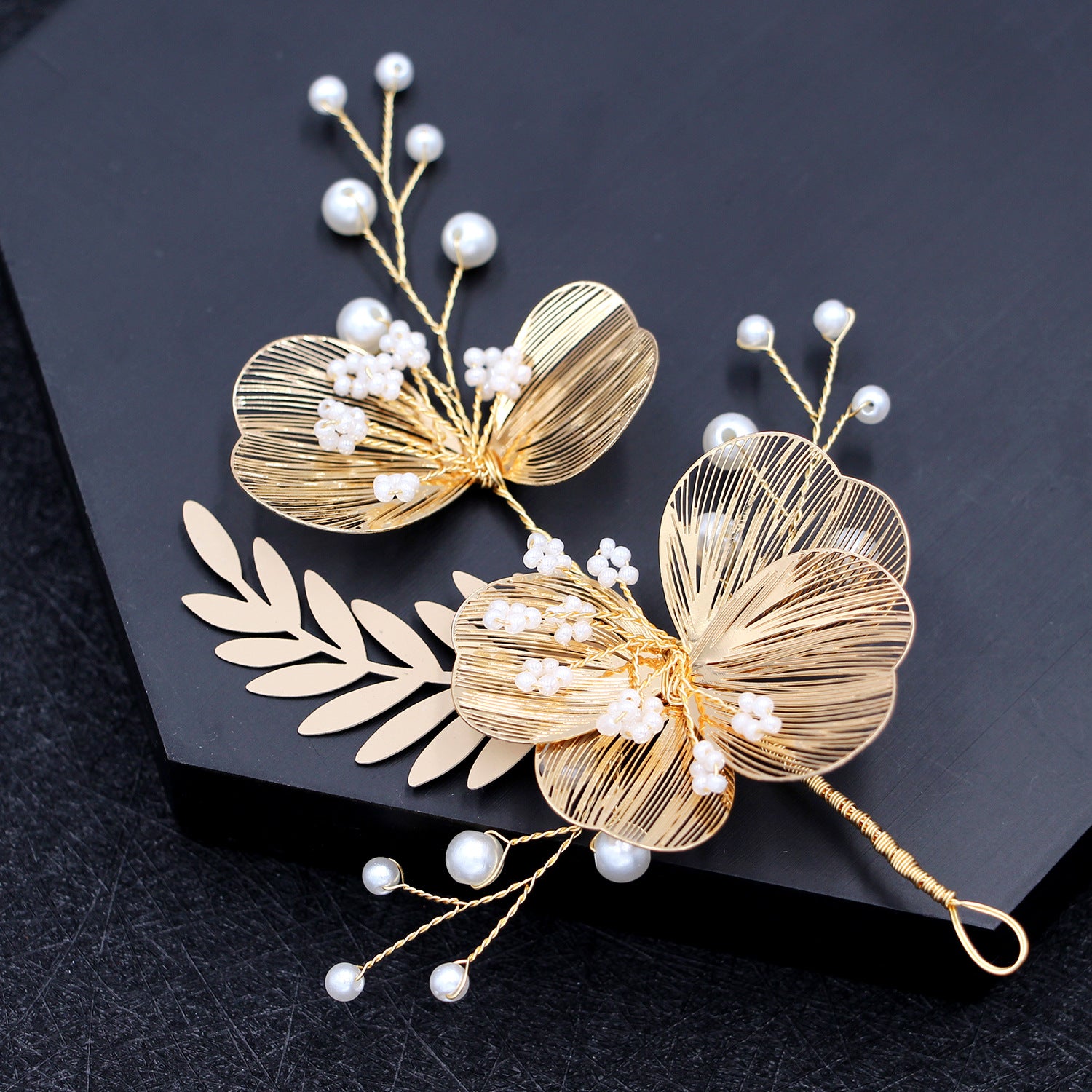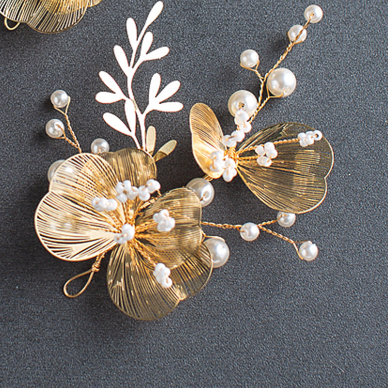 Bridal Gold Flower Hair and Earring Set for Wedding Dress Accessories