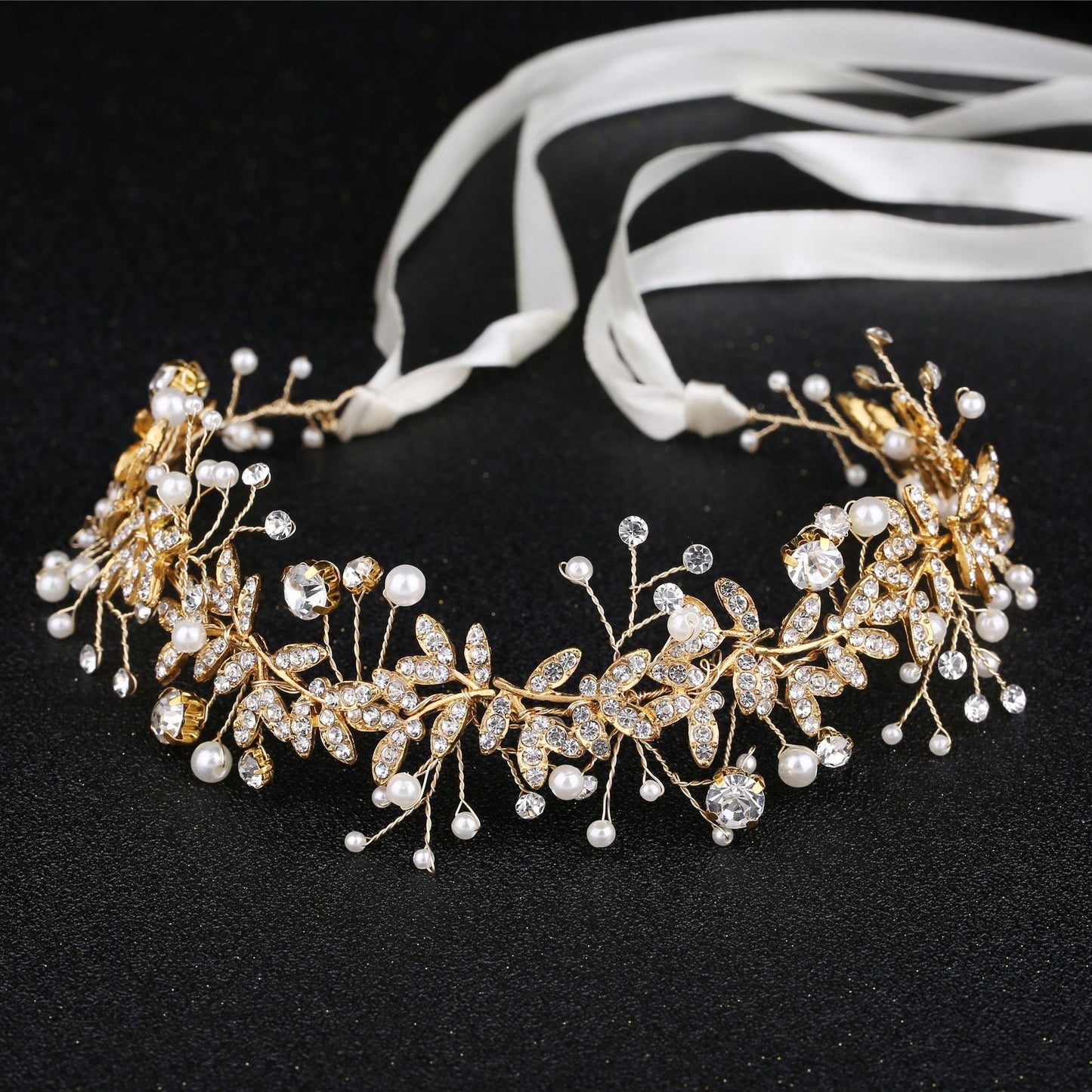 Bridal Leaf Alloy Pearl and Diamond Wedding Headband