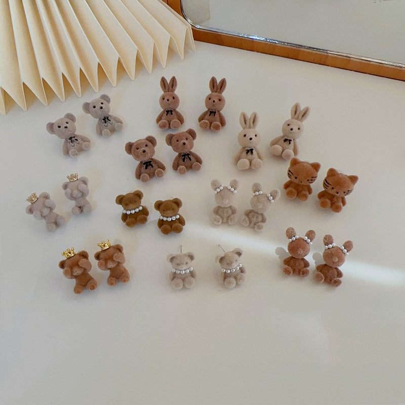 Cartoon Bear and Plush Bunny Stud Earrings - Korean Style Fashion Jewelry for Women