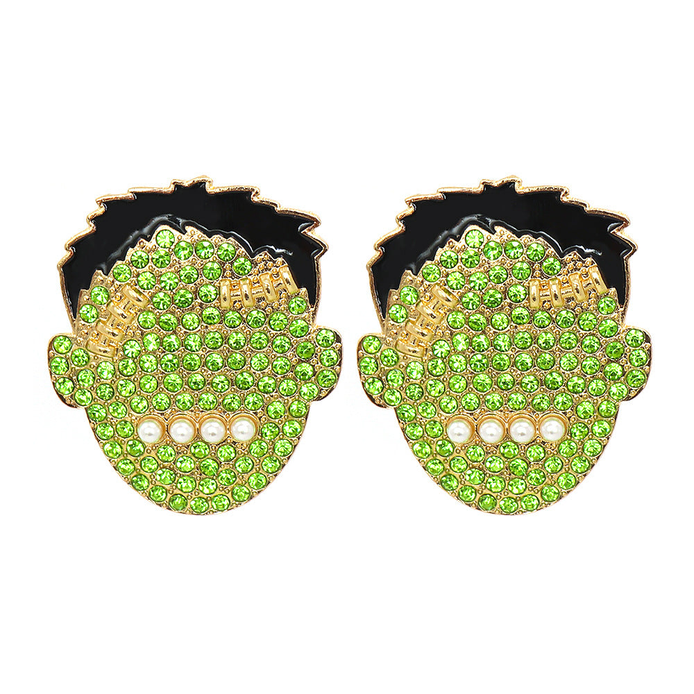 Cartoon Hulk Green Head Halloween Earrings - European and American Creative Jewelry