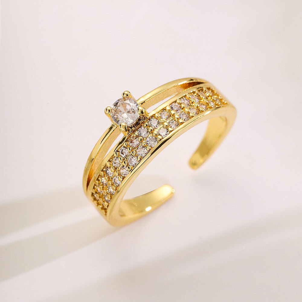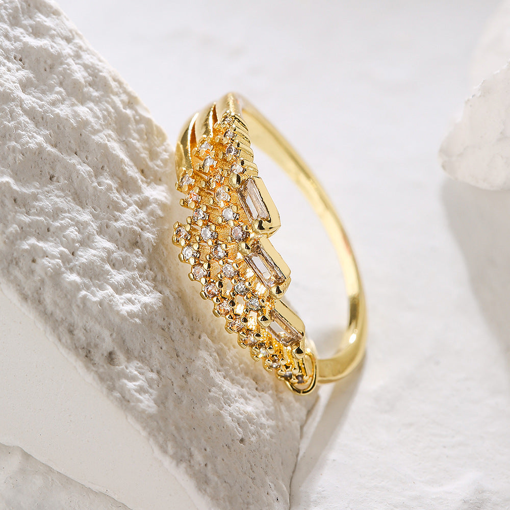 18K Gold Plated Zircon Geometric Open Ring - Vintage Style
