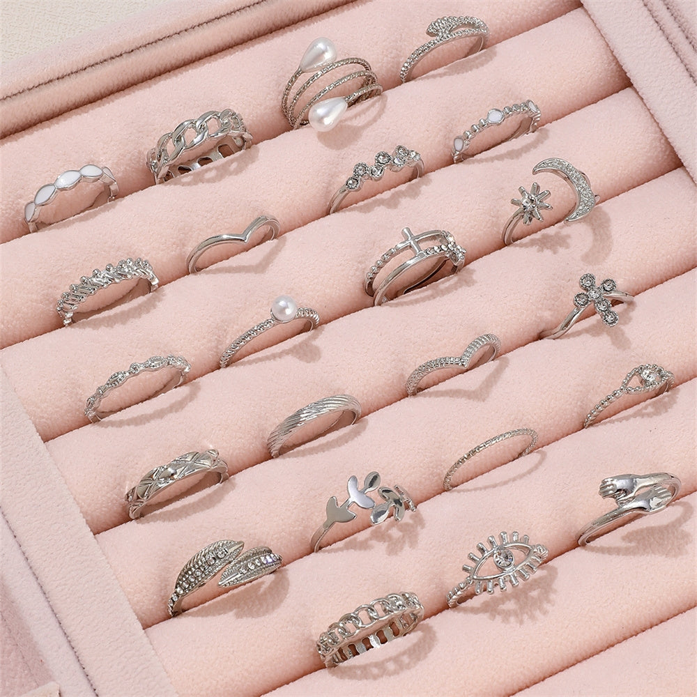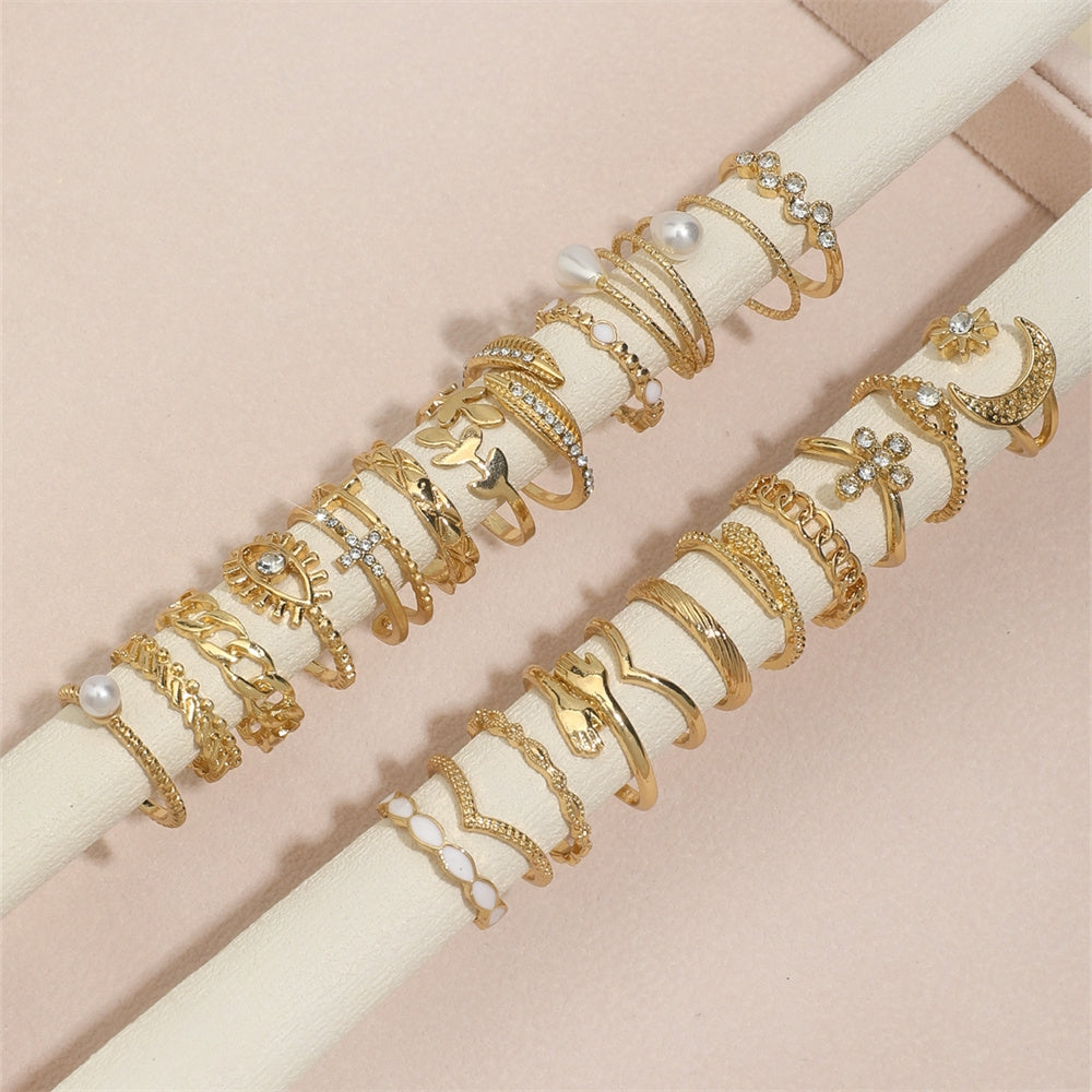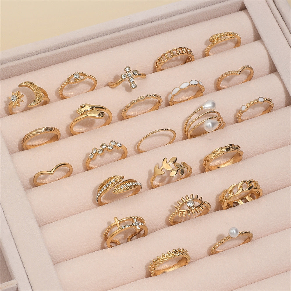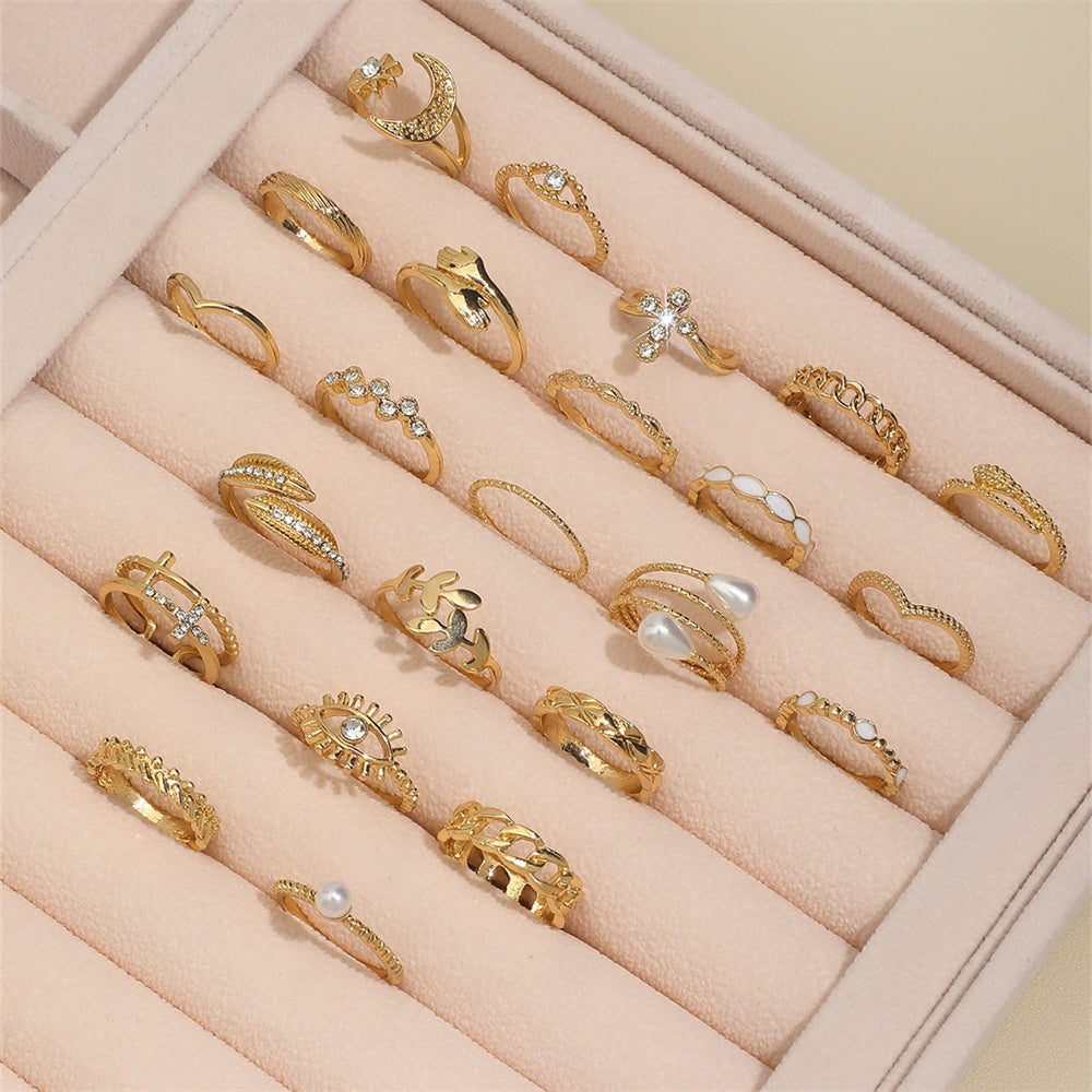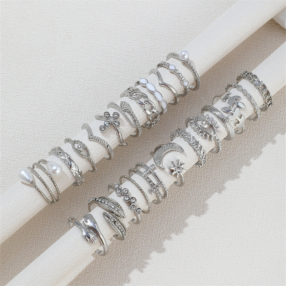 Casual Devil's Eye Moon Rhinestone Inlay Women's Multi-Piece Ring Set