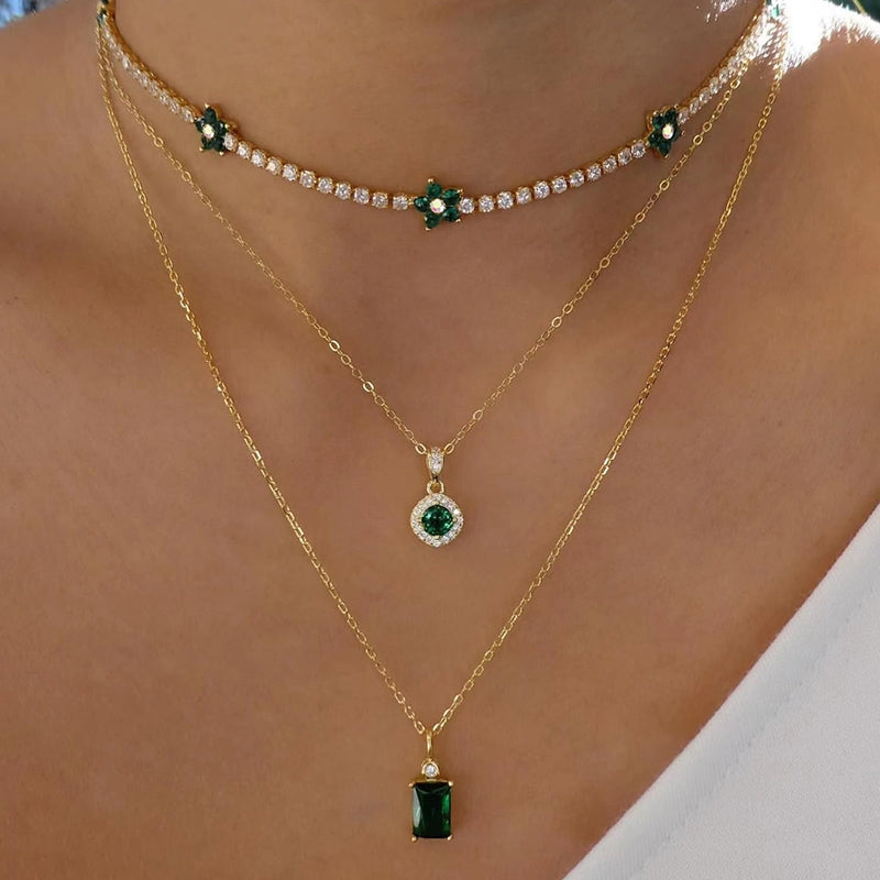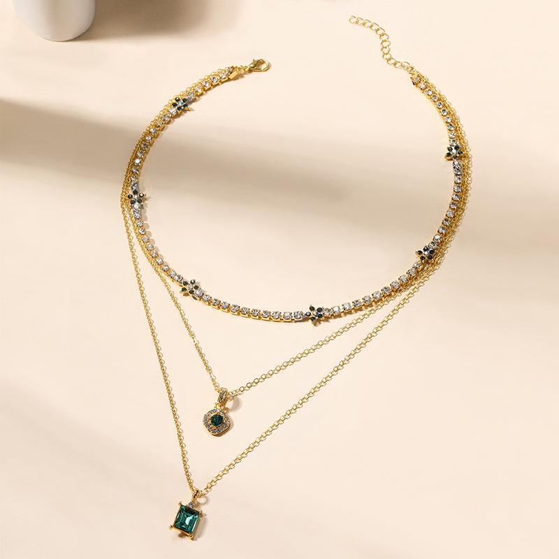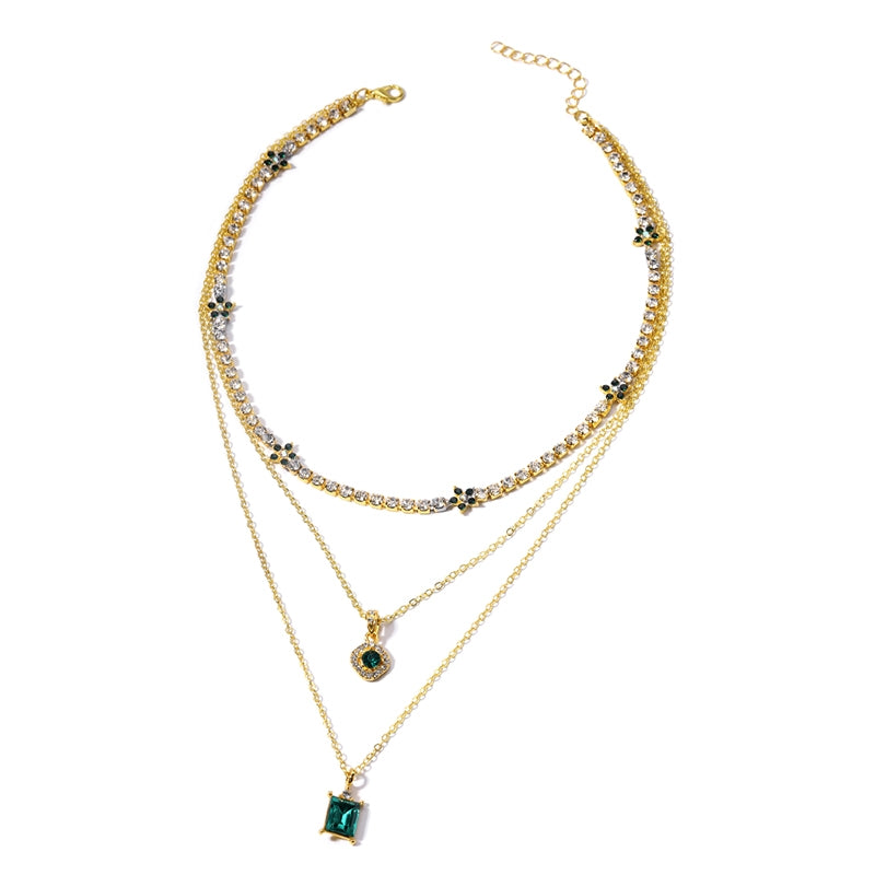 Casual Rhinestone Flower & Star Layered Necklace with Evil Eye Pendant
