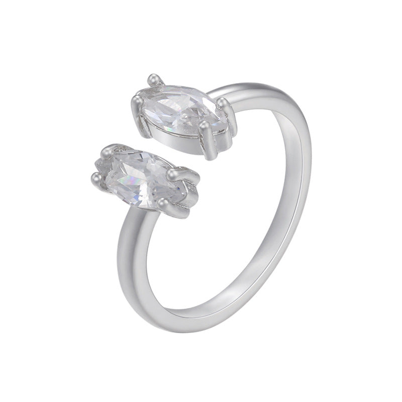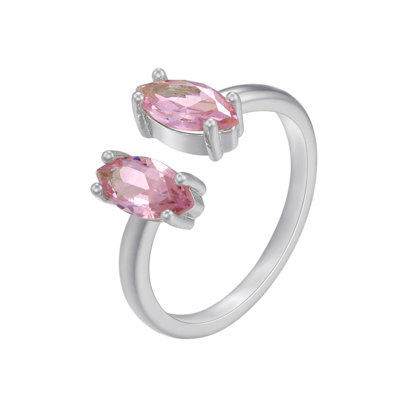 18K Gold Plated Geometric Zircon Open Ring with Marquise Pink Stone