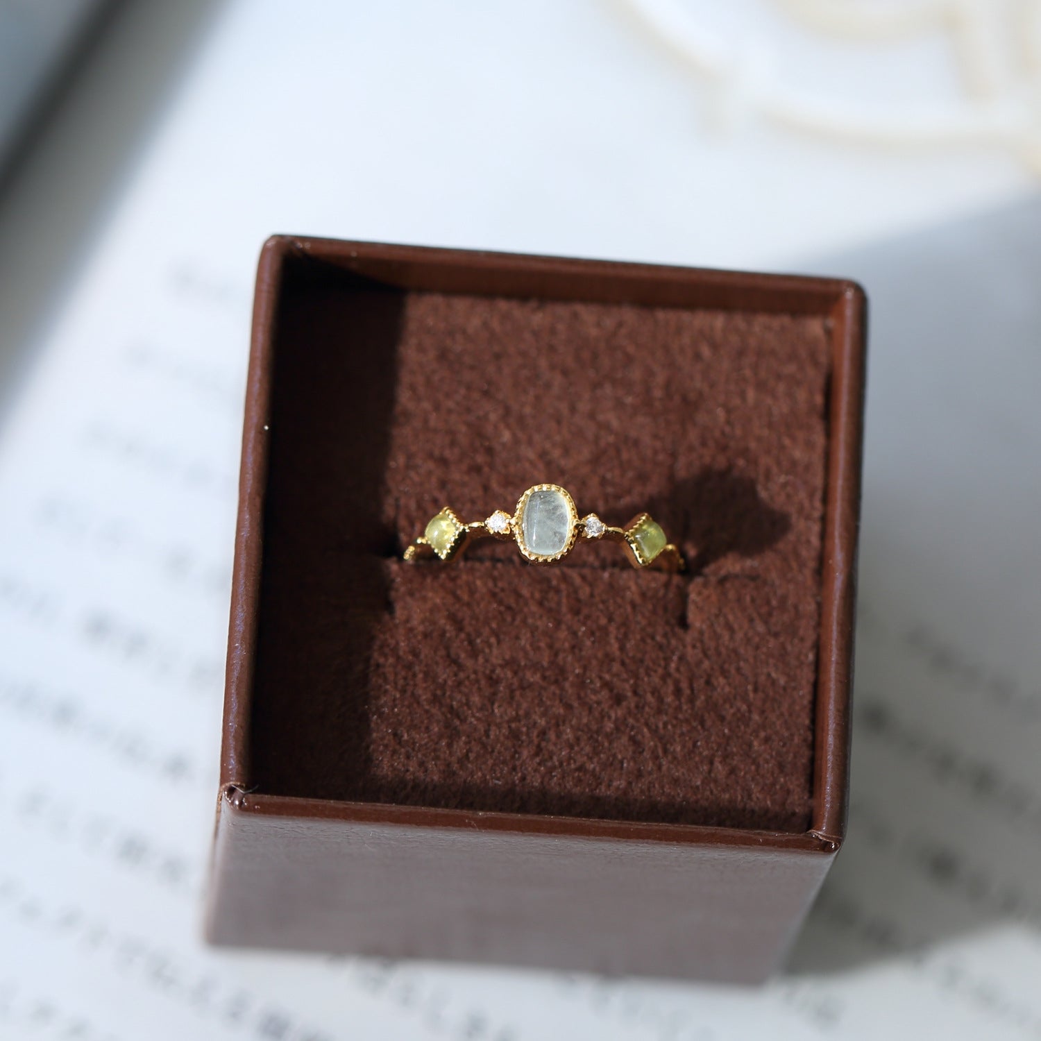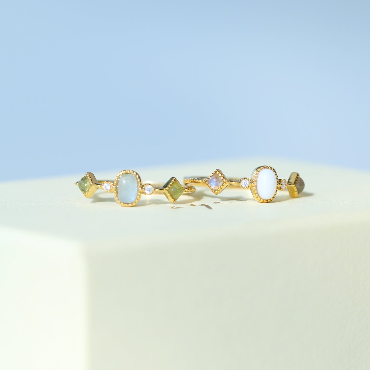 Geometric Sterling Silver Gold Plated Ring with Natural Aquamarine and Labradorite