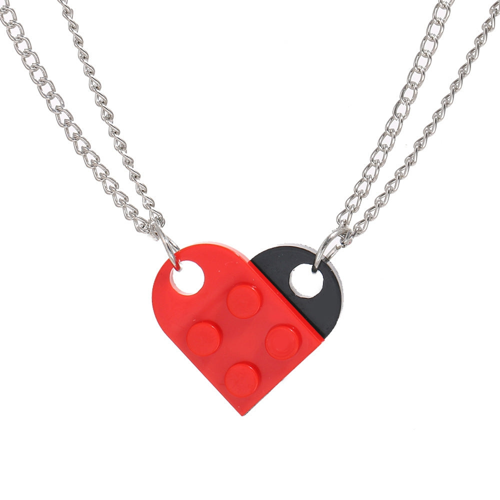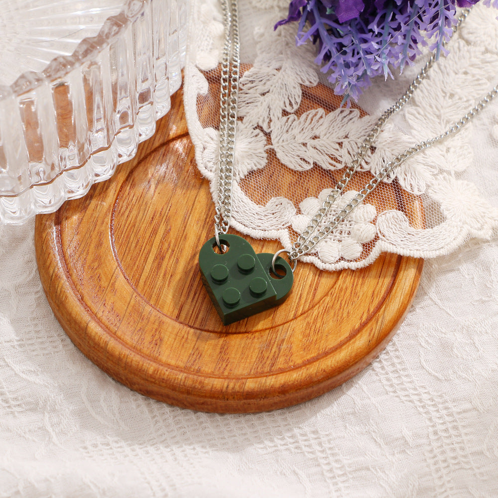 Casual Heart Shape Alloy Unisex Pendant Necklace with Interlocking Blocks