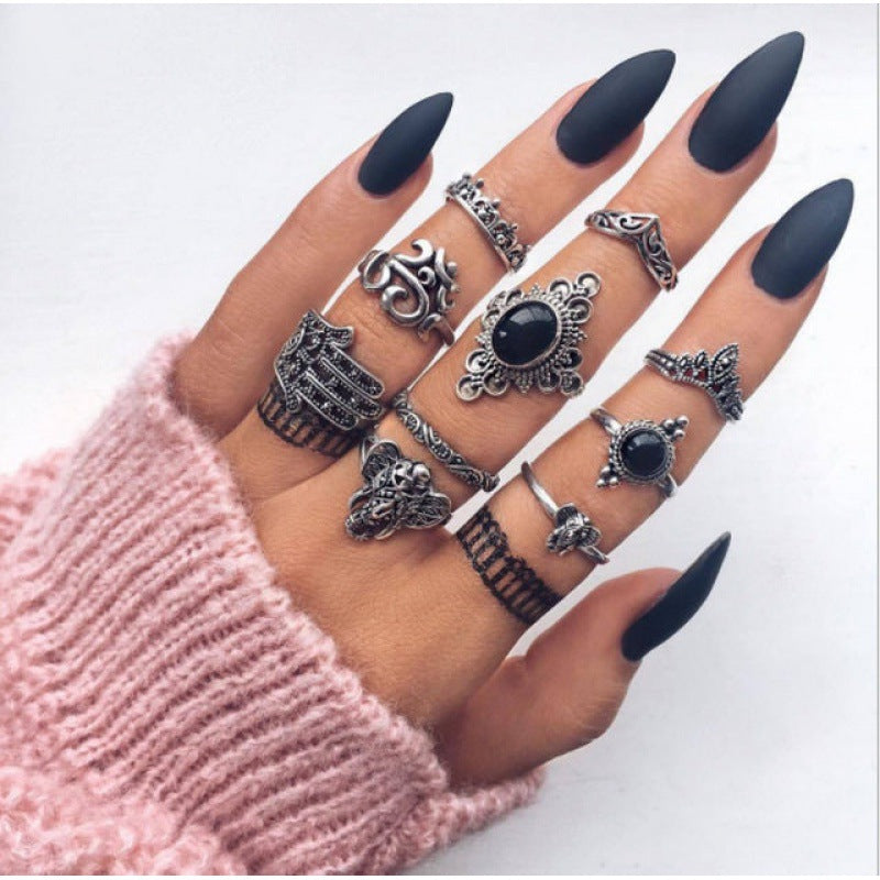 Bohemian Retro Punk Elephant Opal Crystal Midi Knuckle Ring Set for Women
