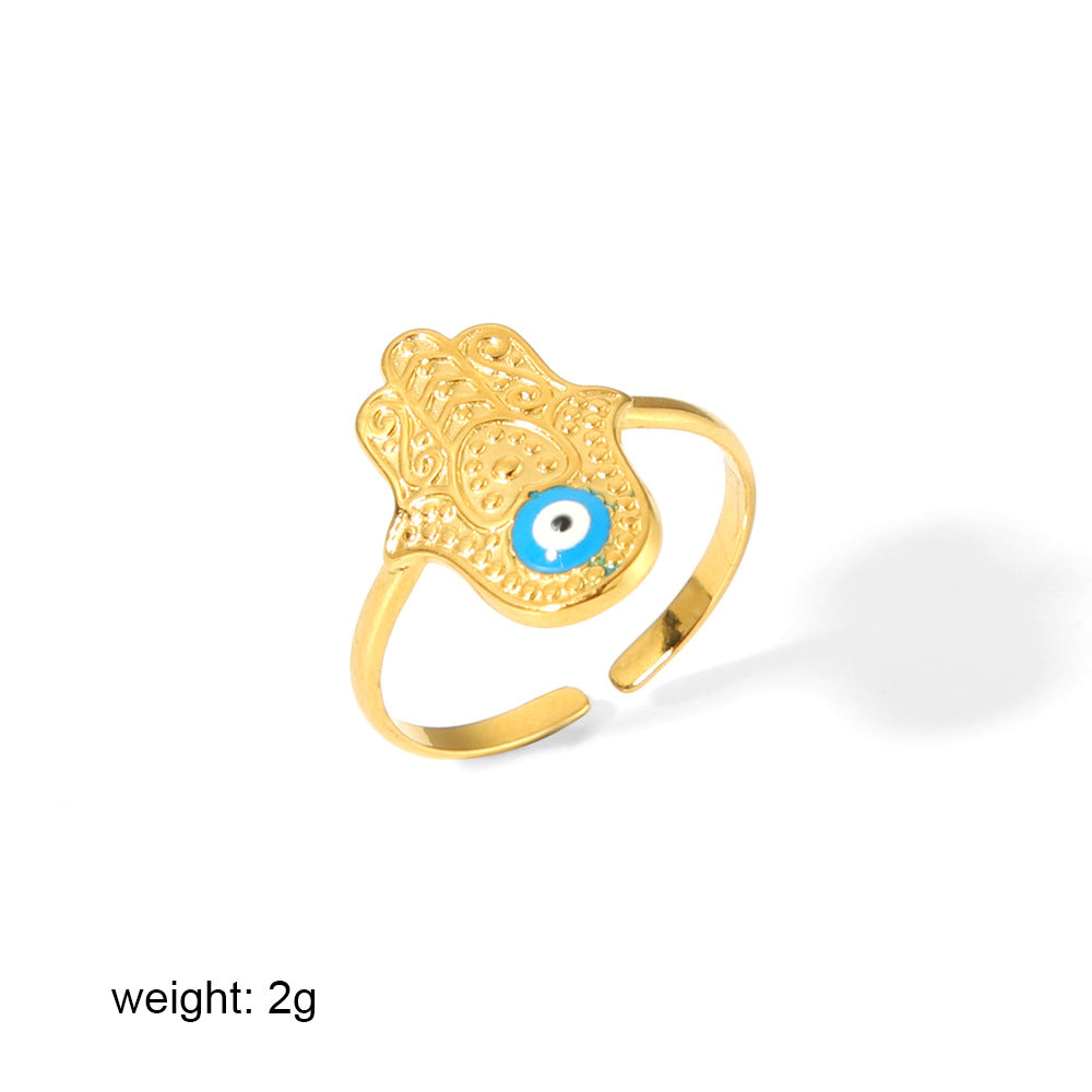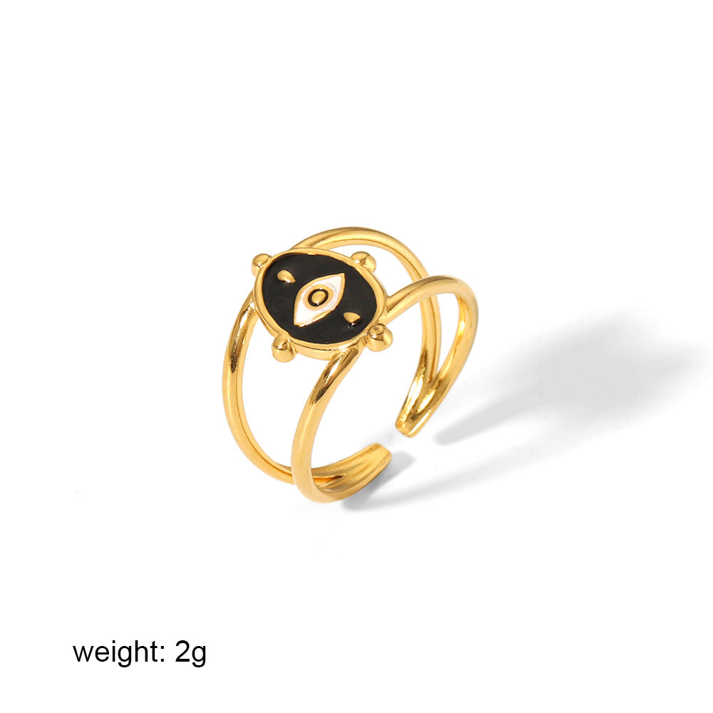 18K Gold Plated Evil Eye Stainless Steel Open Ring