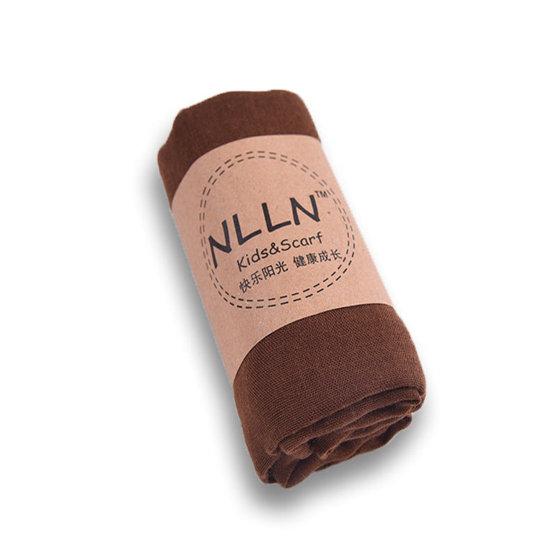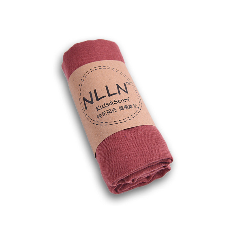 Coffee-children's cotton and linen solid color scarf