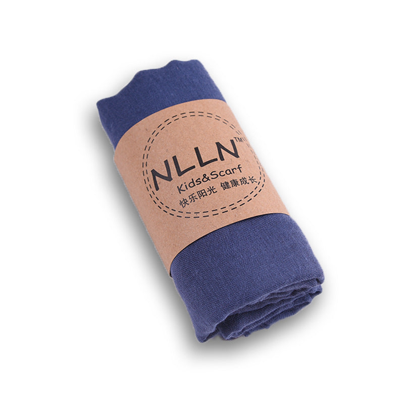 Navy blue - children's cotton and linen solid color scarf