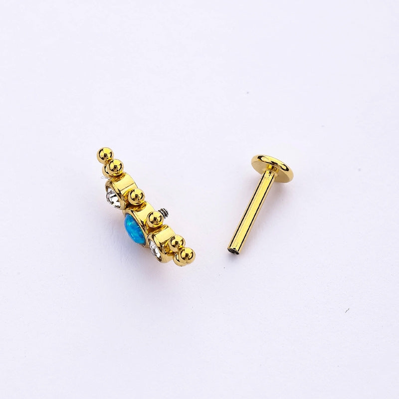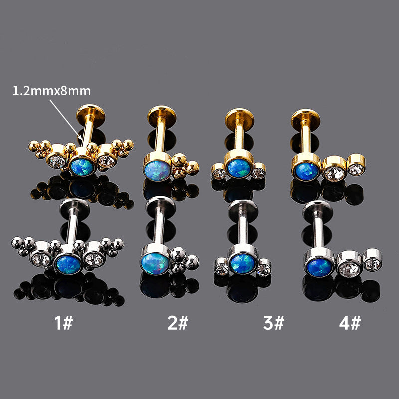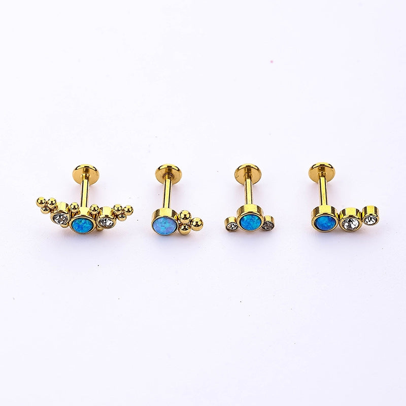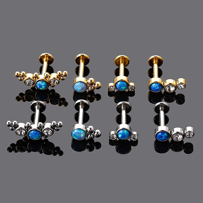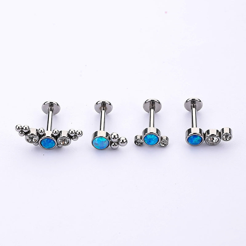 Classic Geometric Stainless Steel Opal Zircon Ear and Lip Stud Piercing Ornament