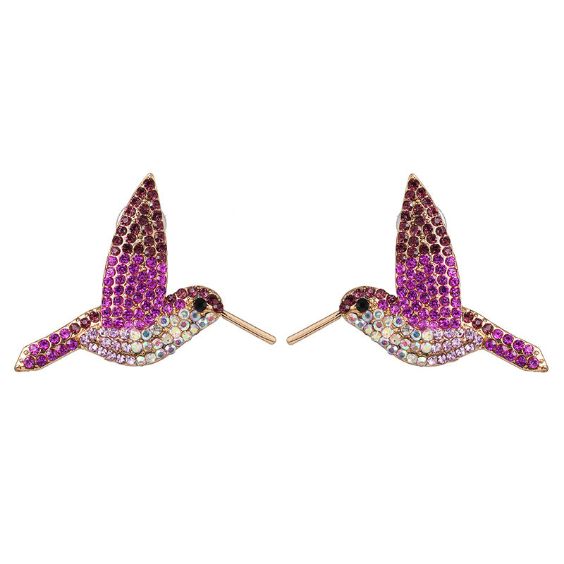 Colored Diamond Bird Stud Earrings - Creative Animal Design Statement Jewelry