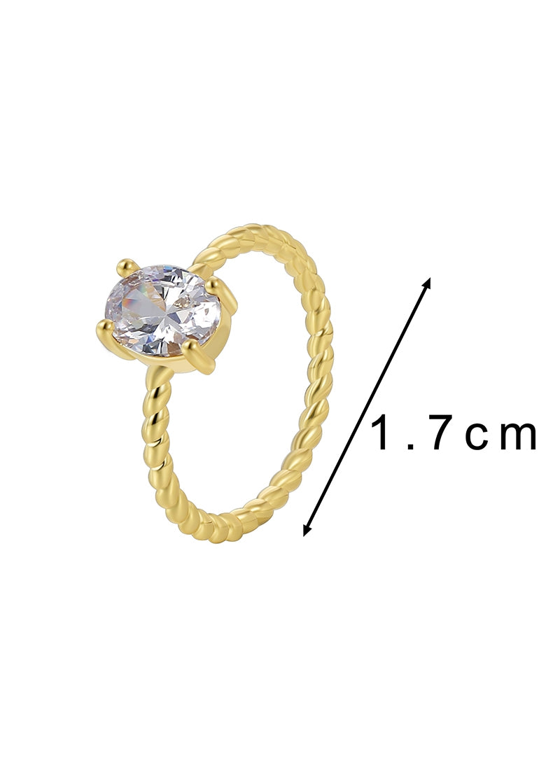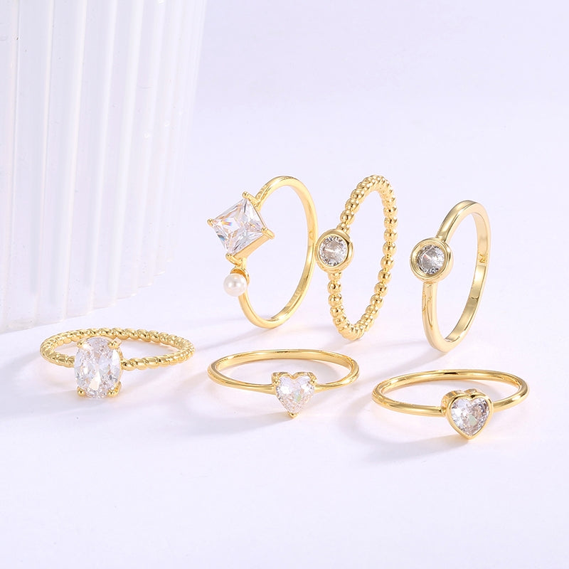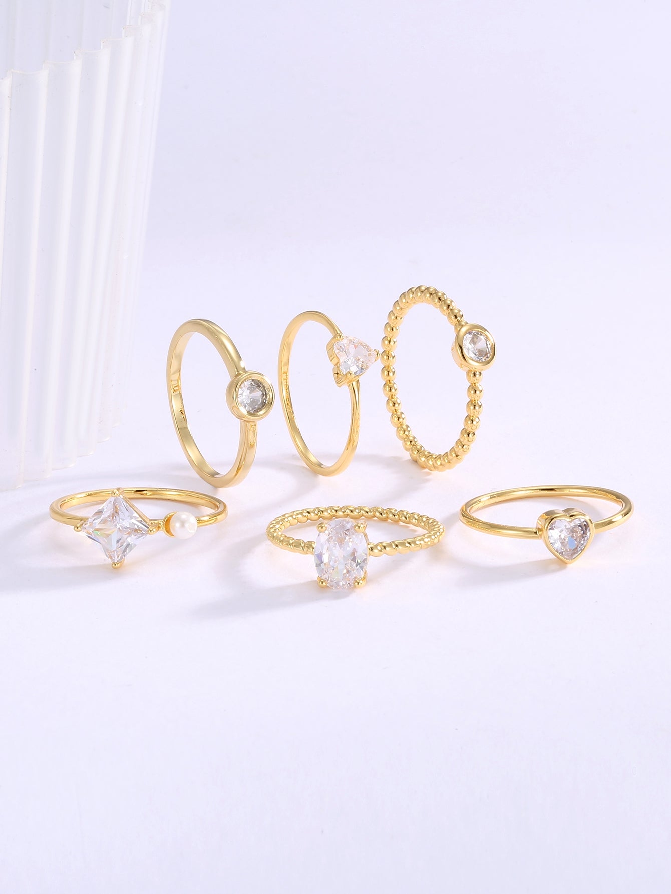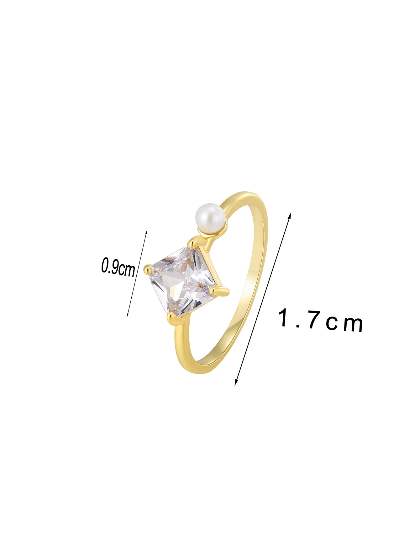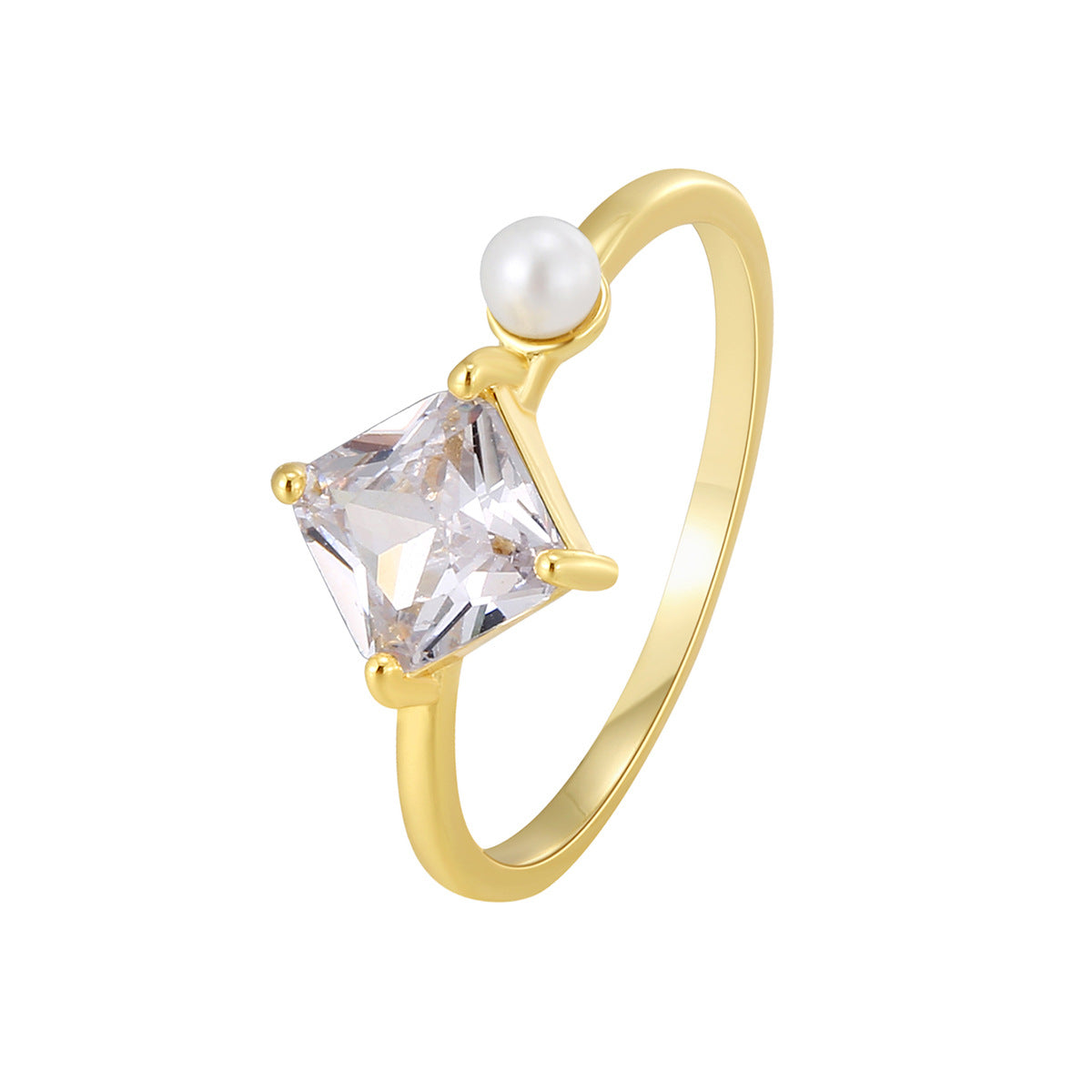 18K Gold Plated Geometric Oval Heart Pearl Zircon Ring with Square Inlay Design