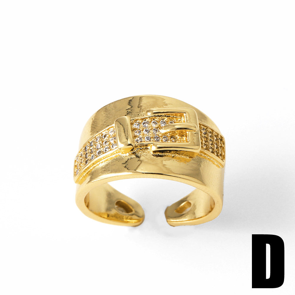 Copper 18K Gold Plated Geometric Zircon Flower Open Ring