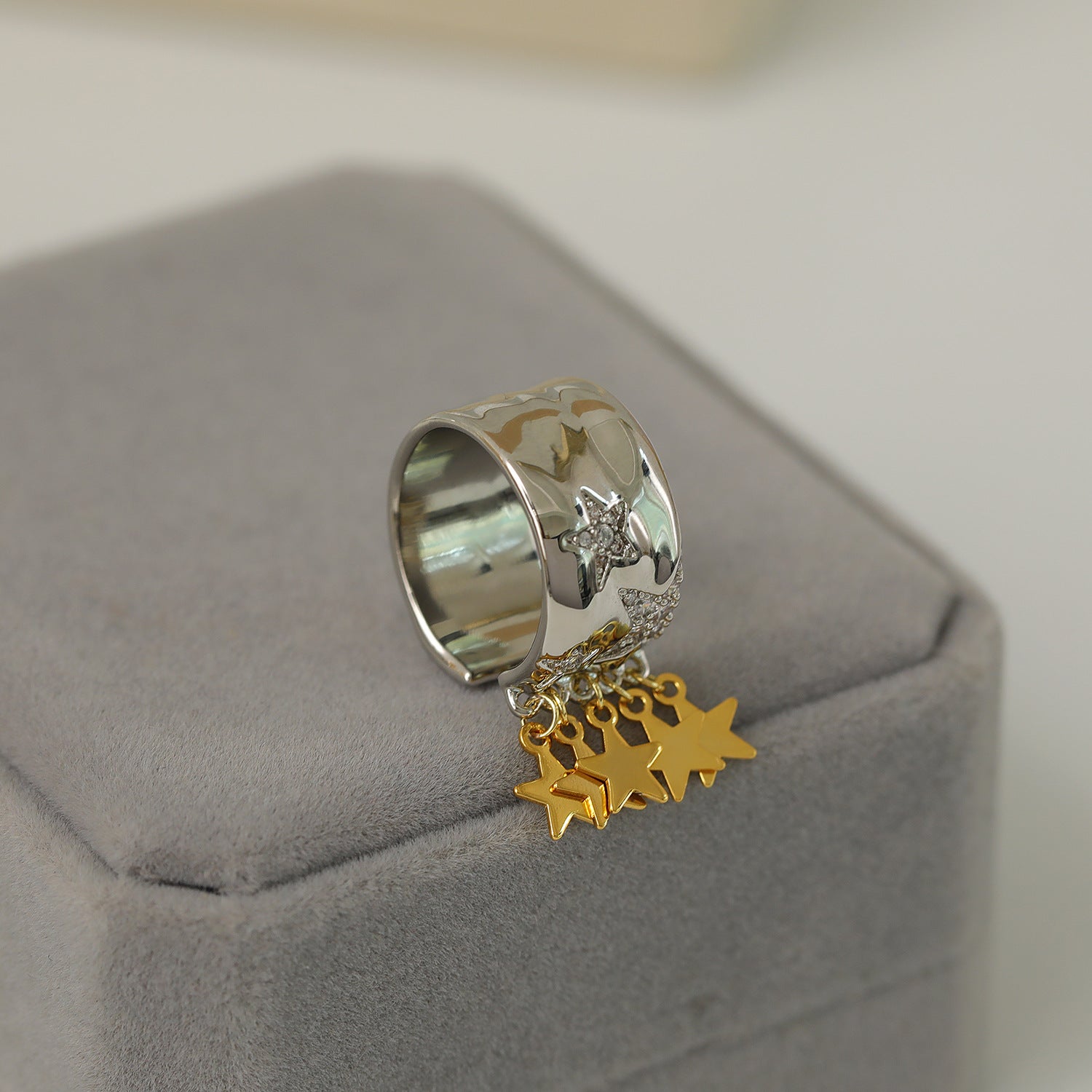 Copper 18K Gold Plated Star Charm Tassel Ring - Silver Statement Design