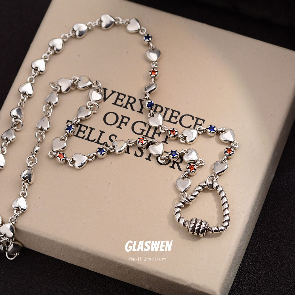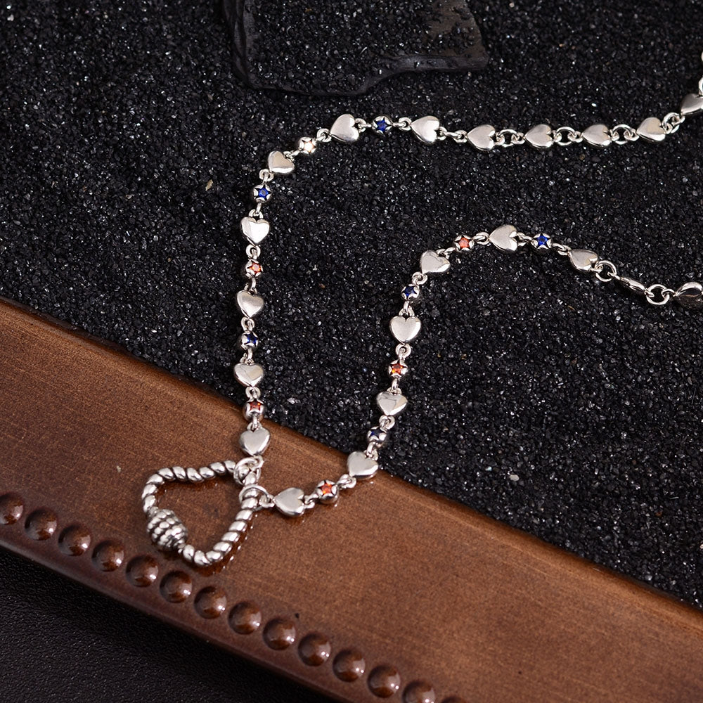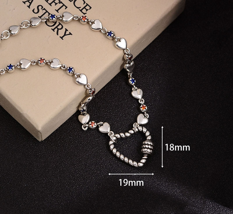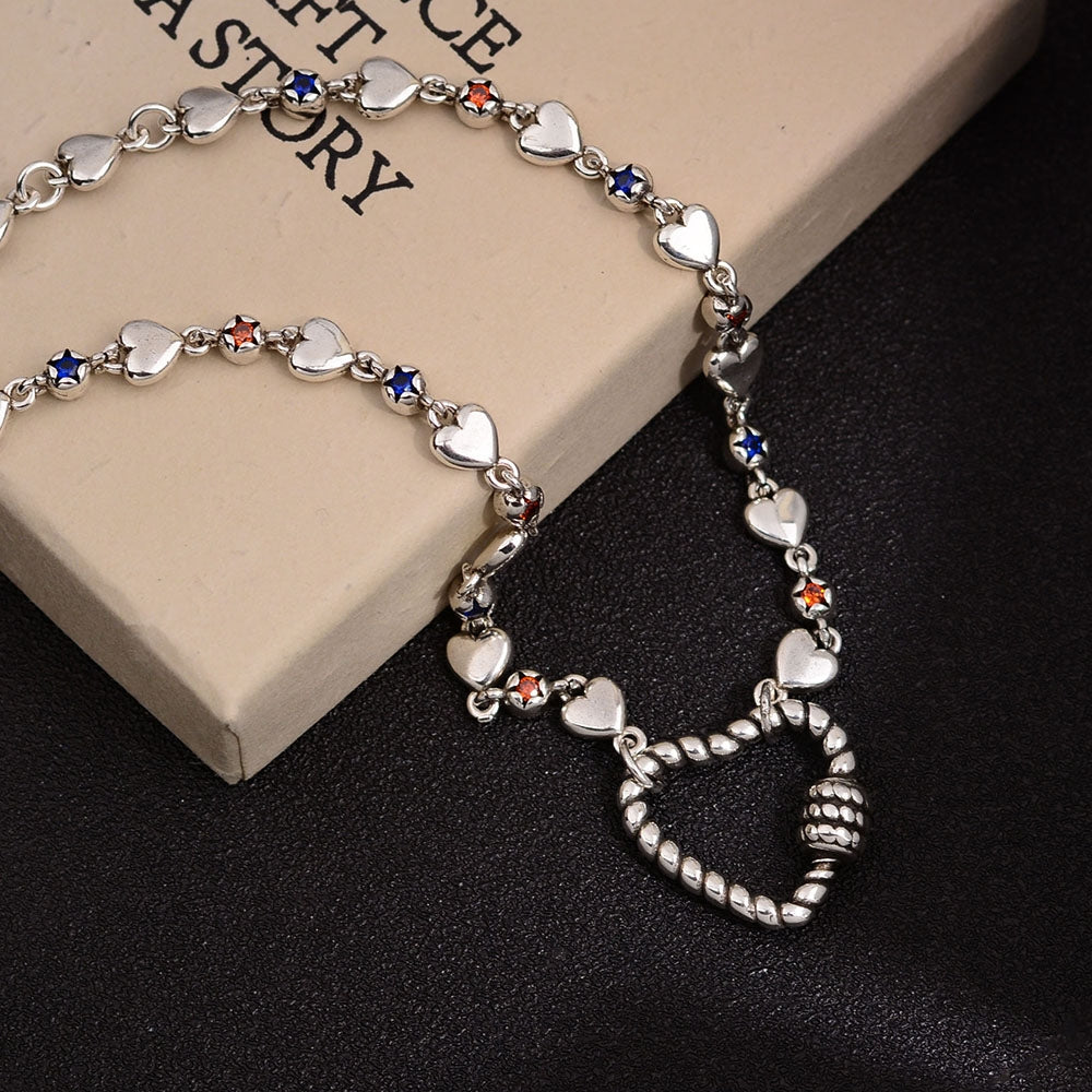 Copper Modern Heart Zircon Pendant Necklace with Vintage Colorful Design