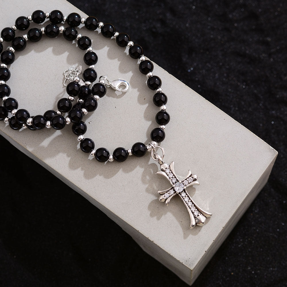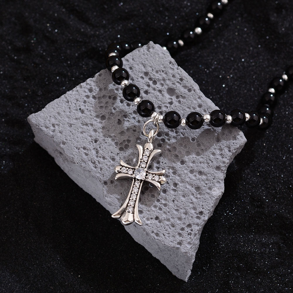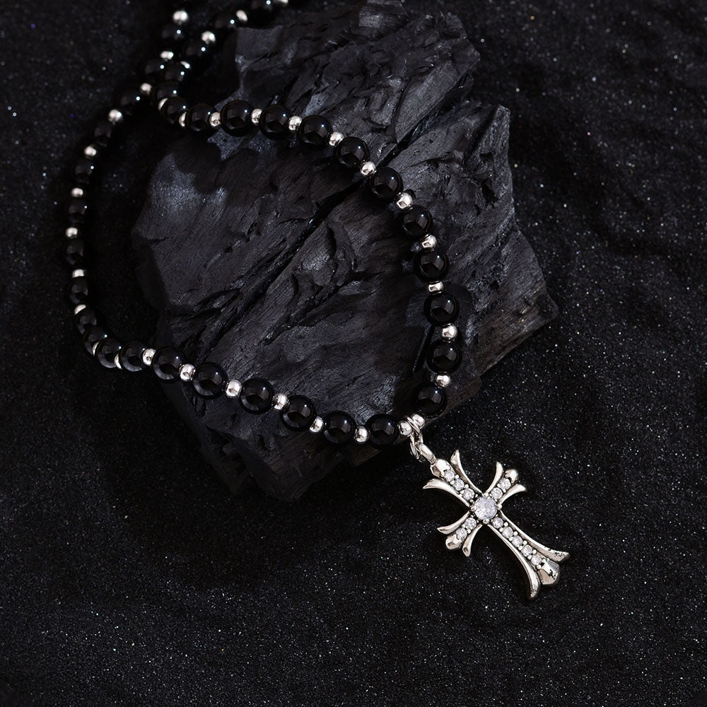 Copper Beaded Zircon Cross Pendant Necklace - Vintage Punk Style