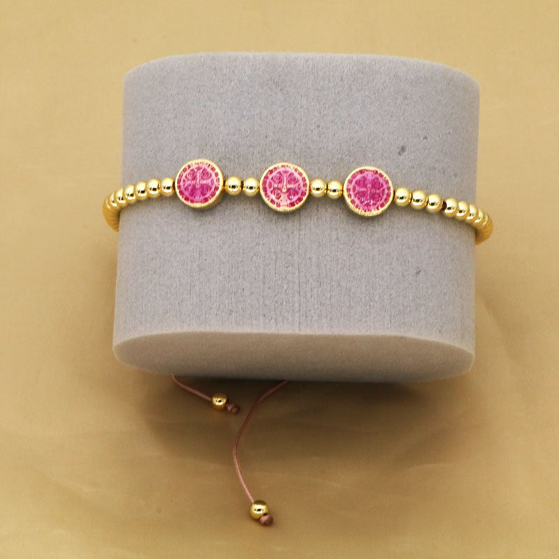 Copper Beaded Colorful Virgin Mary Charm Bracelet