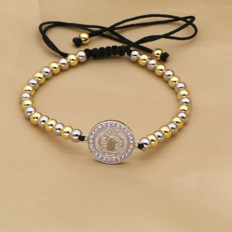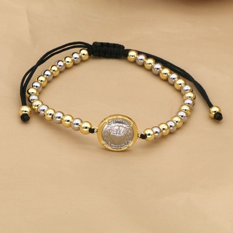 Copper Beaded Adjustable Religious Bracelet with 18k Gold Plated Charms