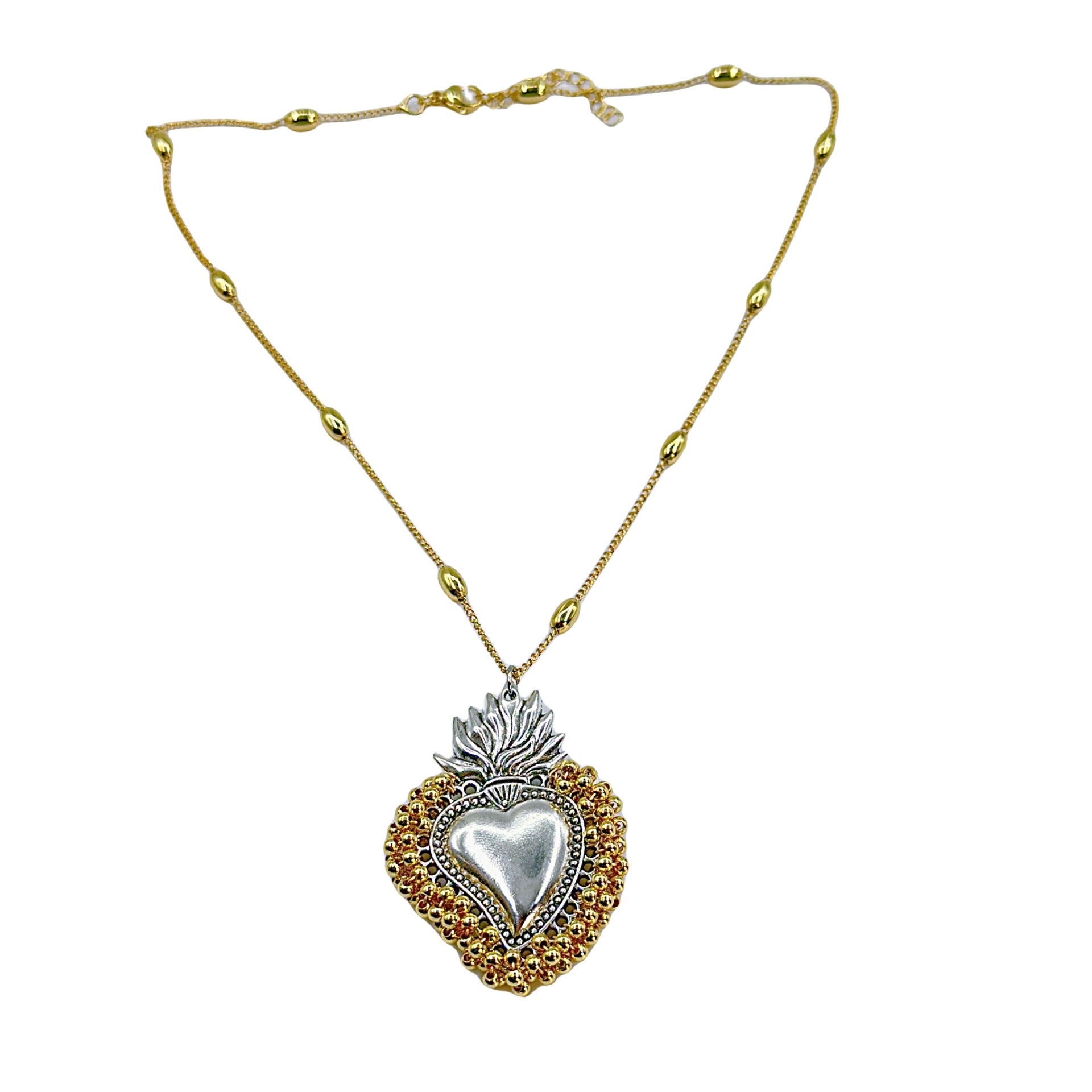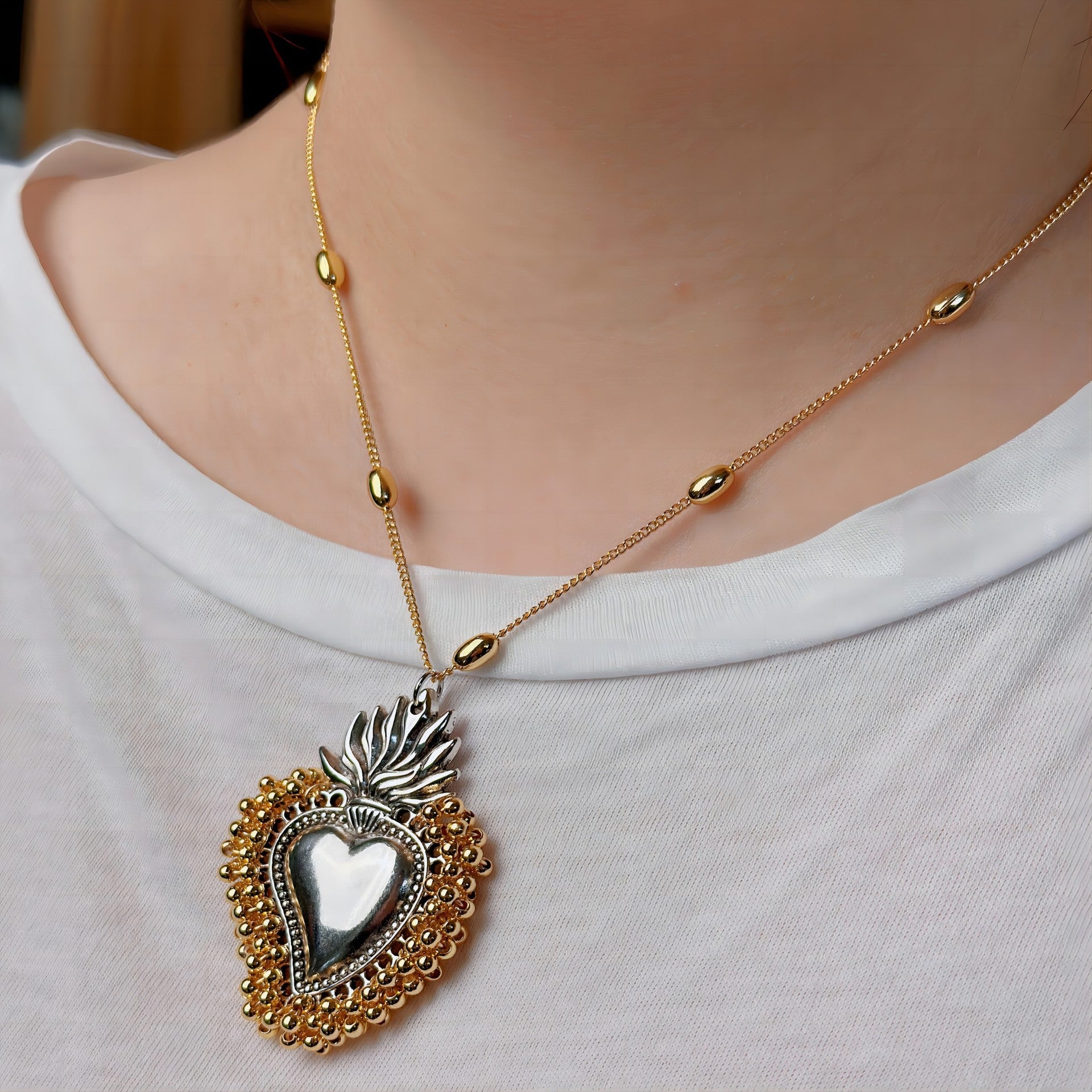 Elegant Geometric Heart Pendant Necklace in 18k Gold Plated Copper