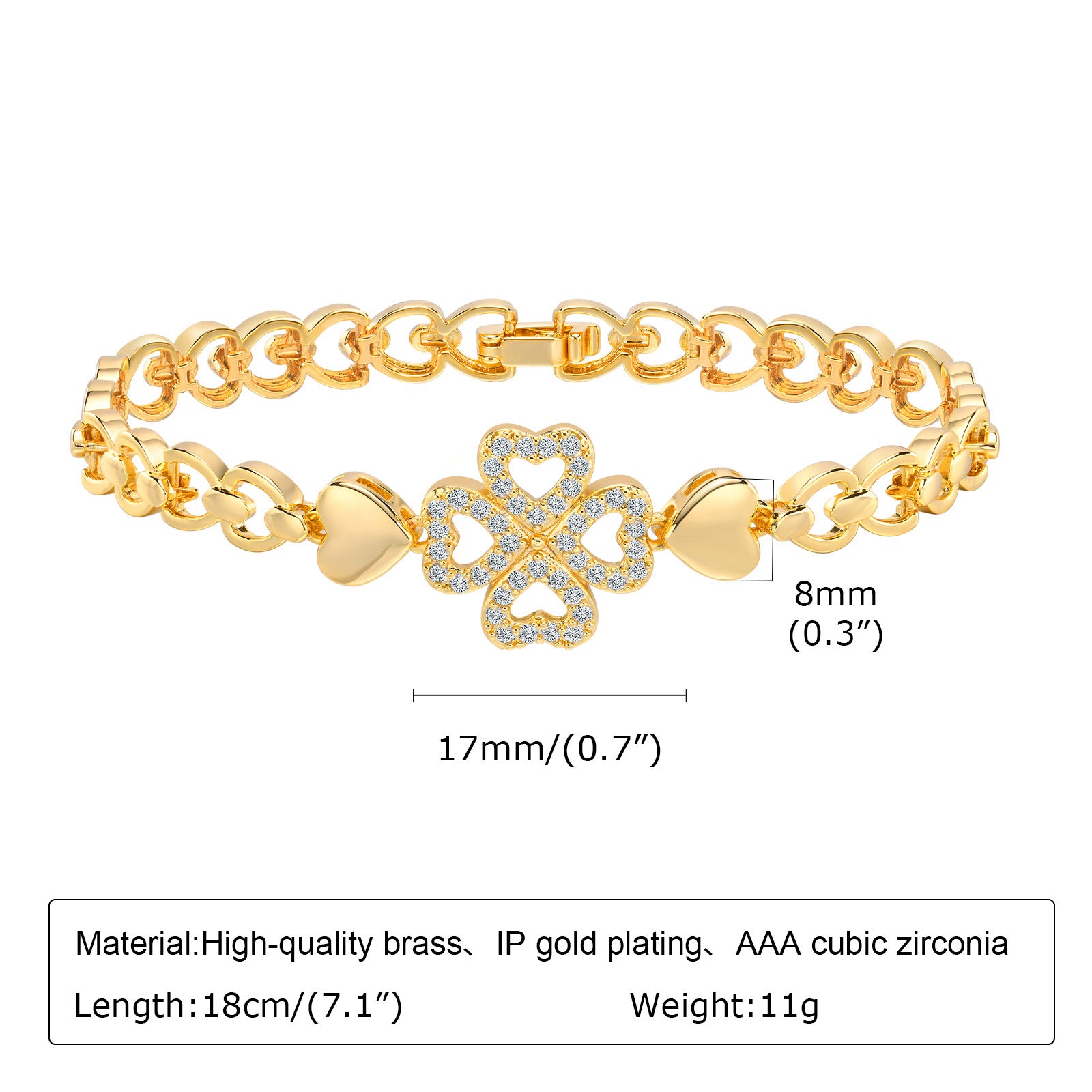 Copper Gold Plated Vintage Heart & Clover Zircon Bracelet