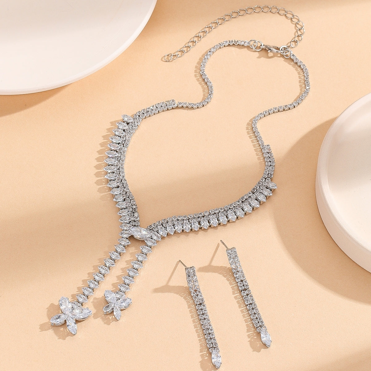 Copper Butterfly Zircon Tassel Necklace and Earring Set for Women