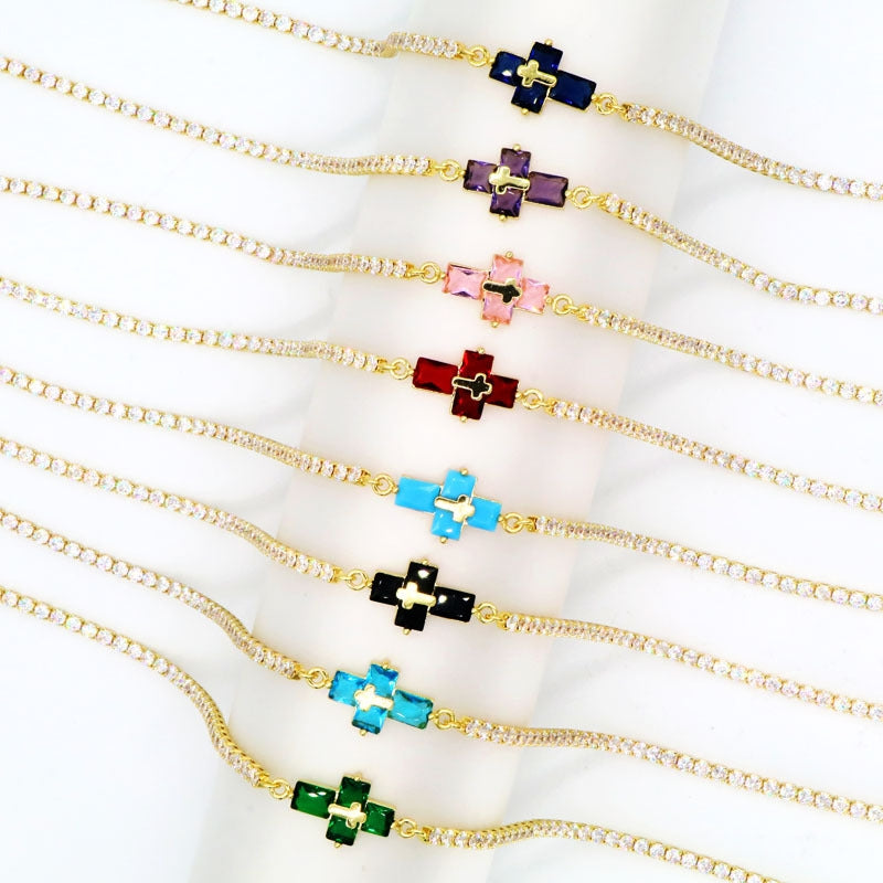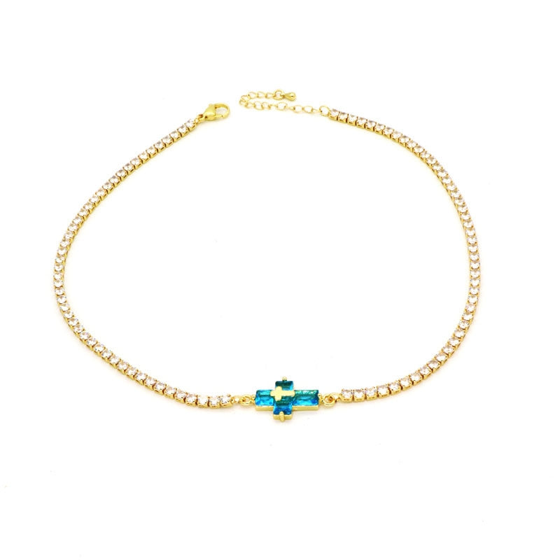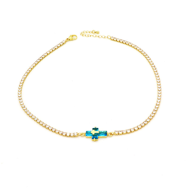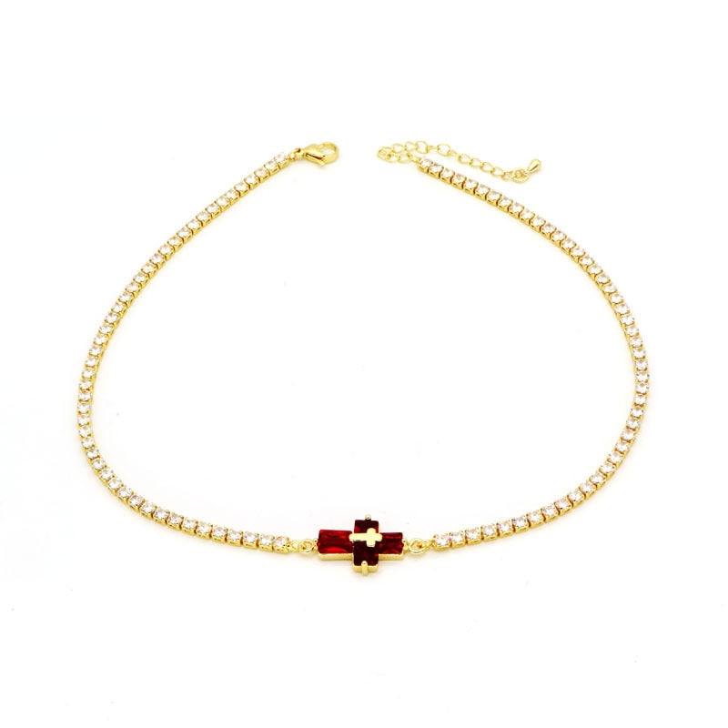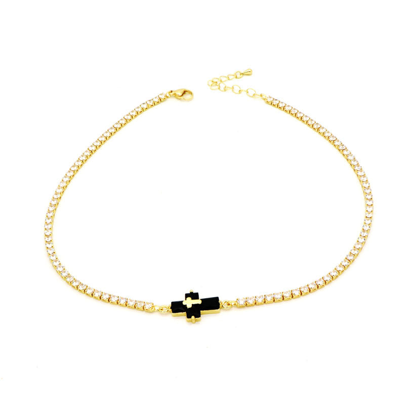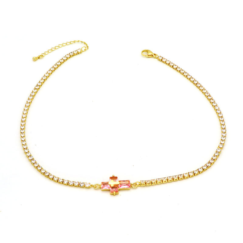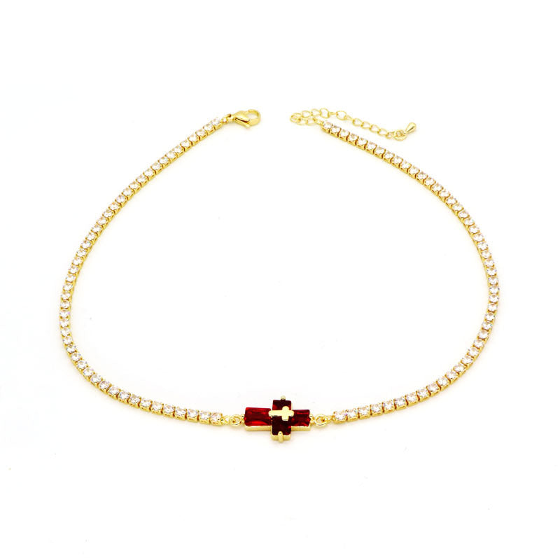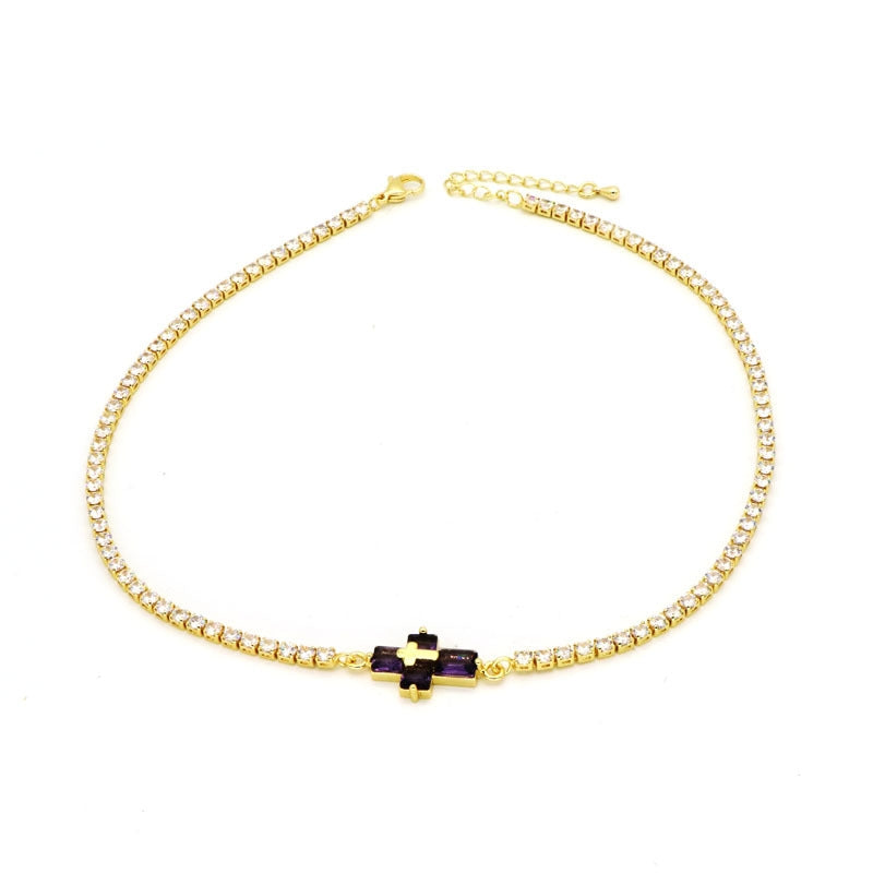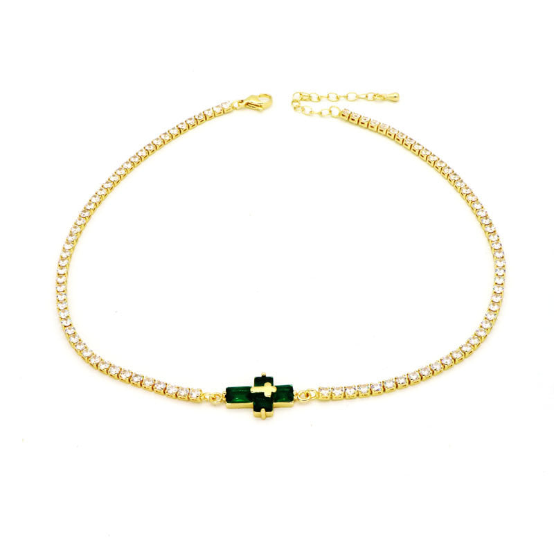Copper Inlay Zircon Cross Pendant Tennis Necklace