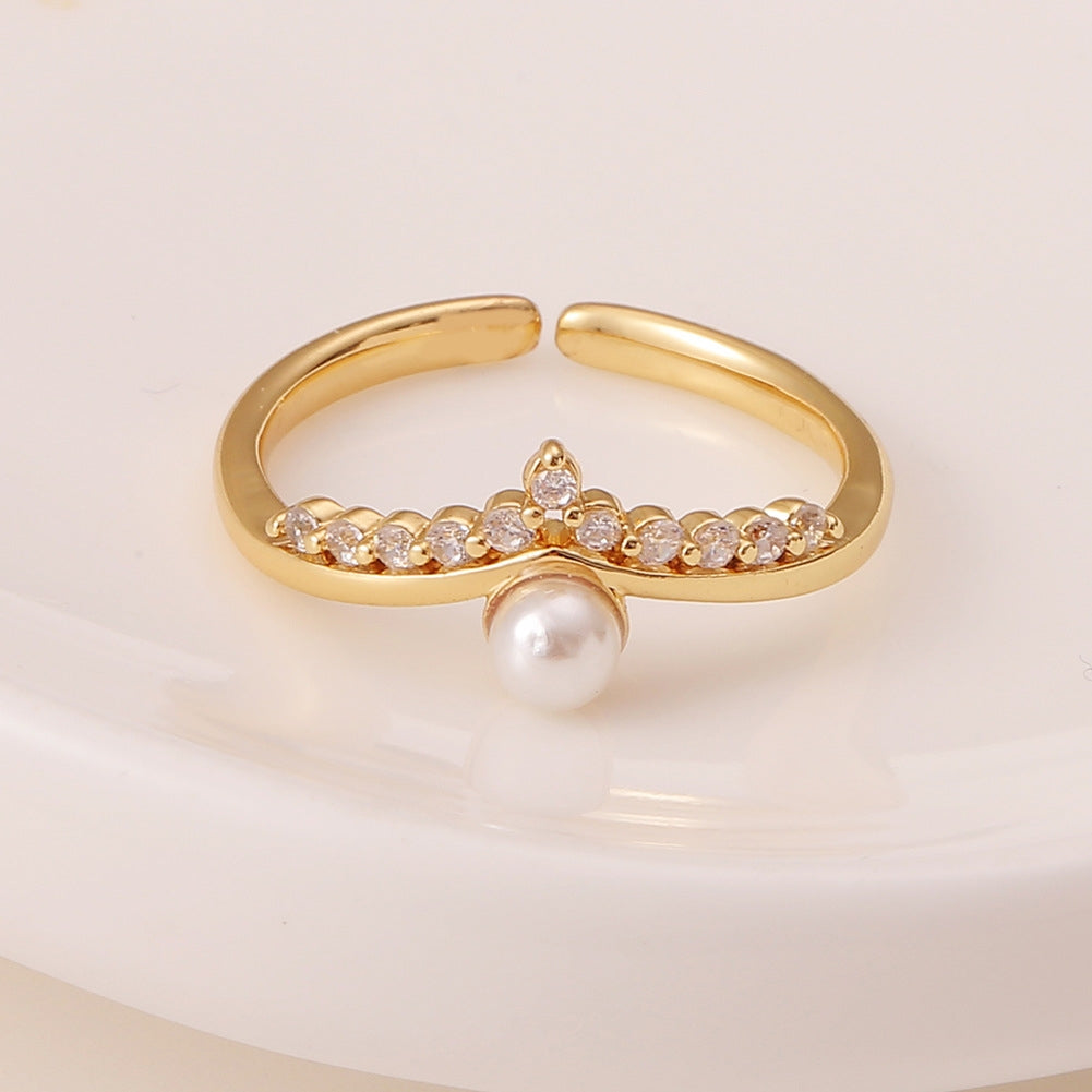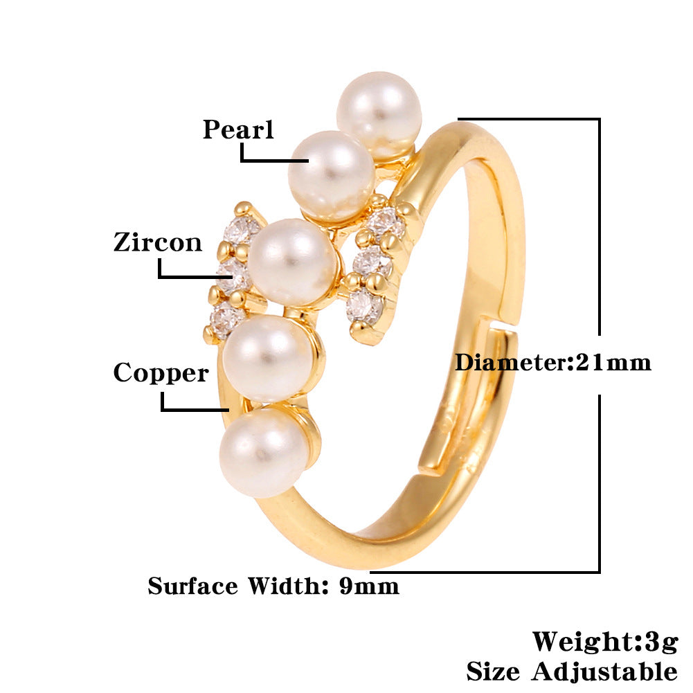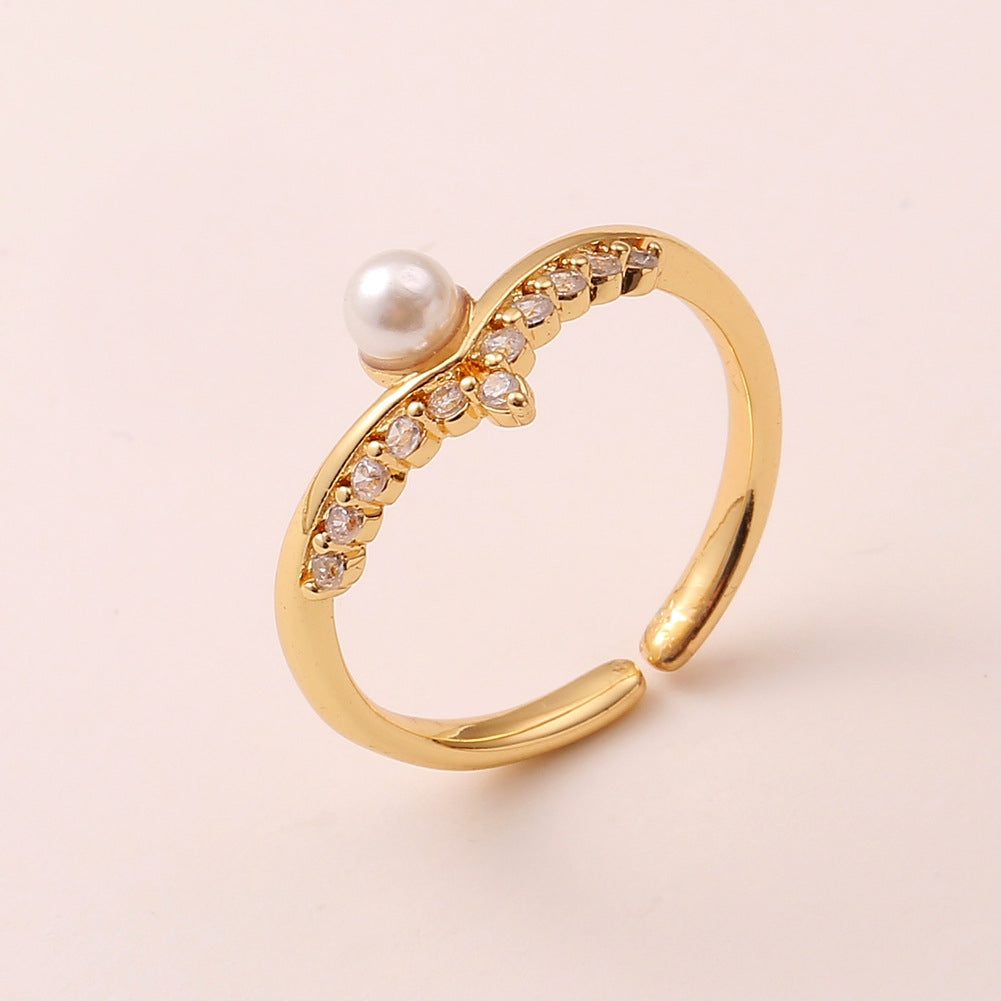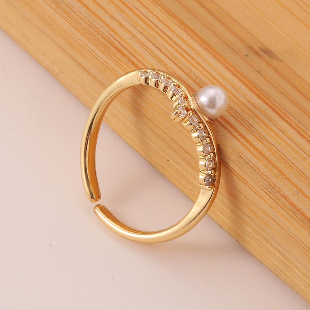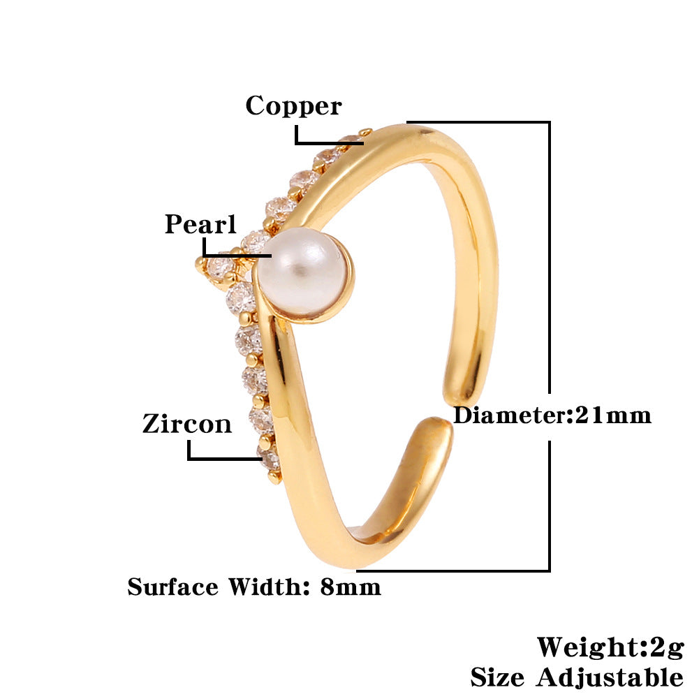 Copper Inlay Zircon Pearl Bohemian Open Ring