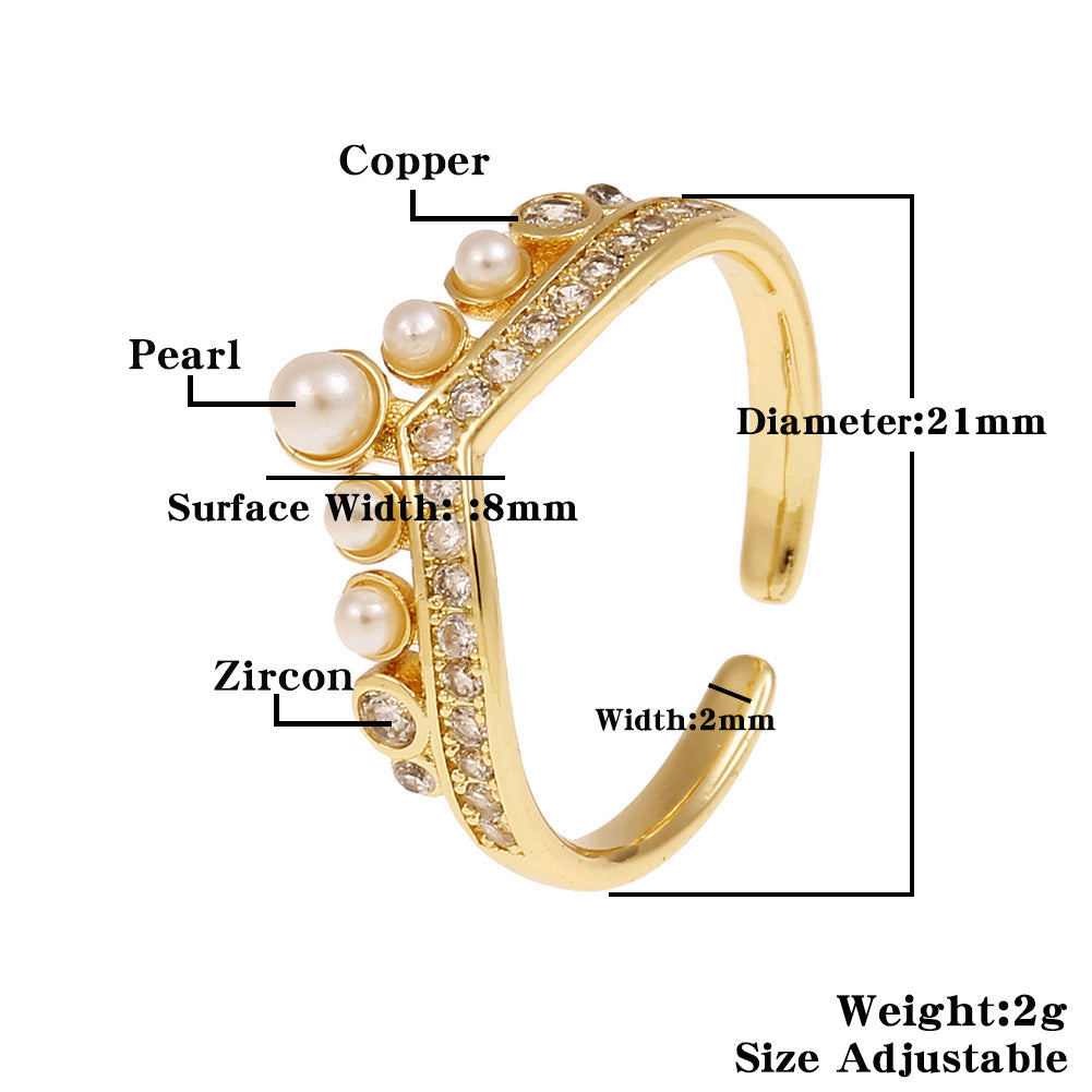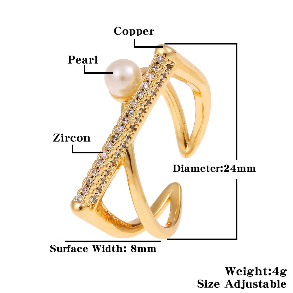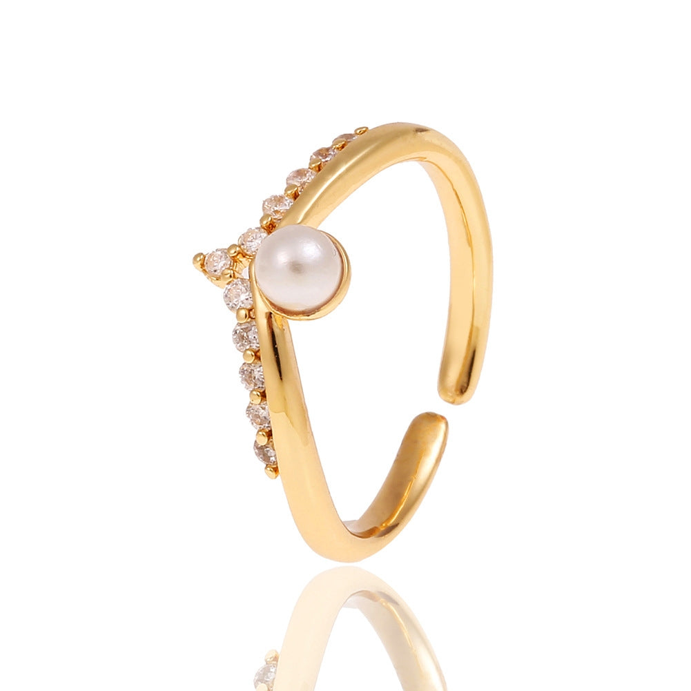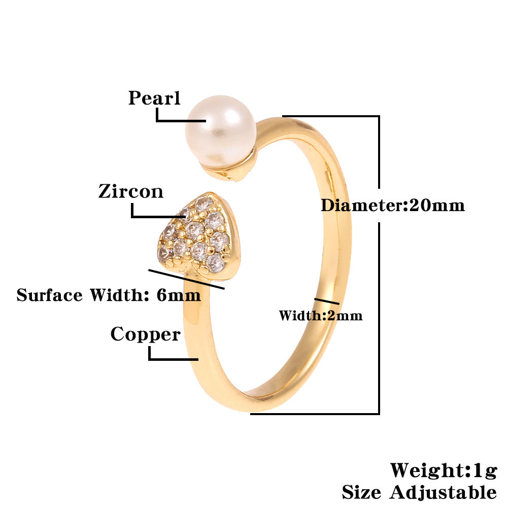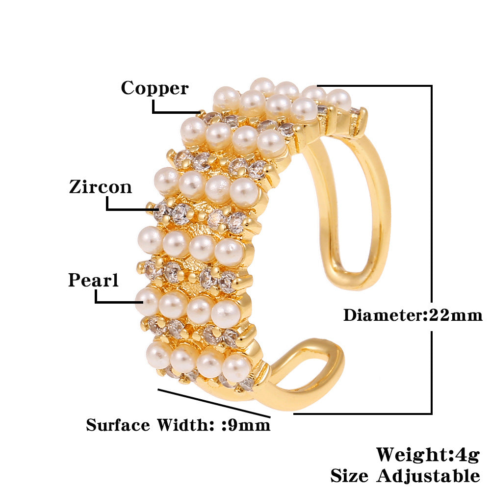 Copper Inlay Zircon Pearl Bohemian Open Ring