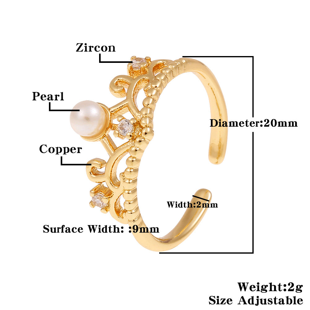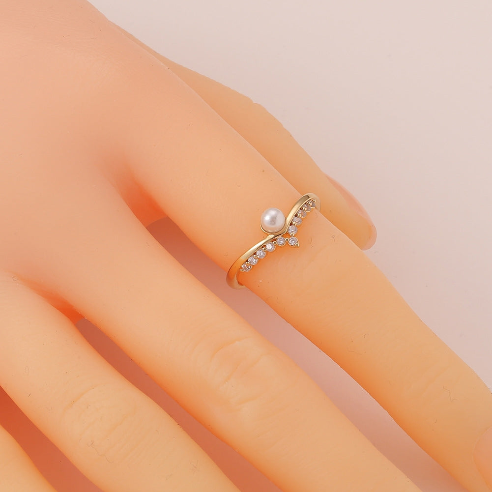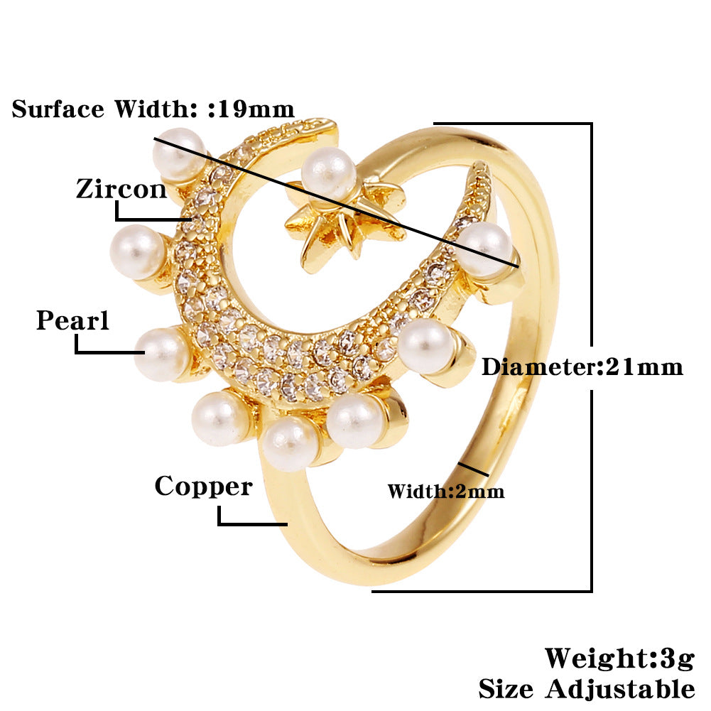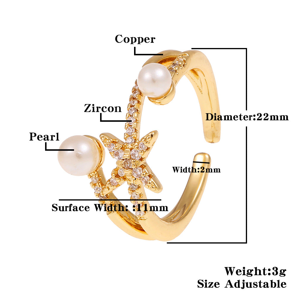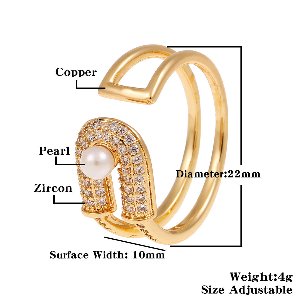 Copper Inlay Zircon Pearl Bohemian Open Ring