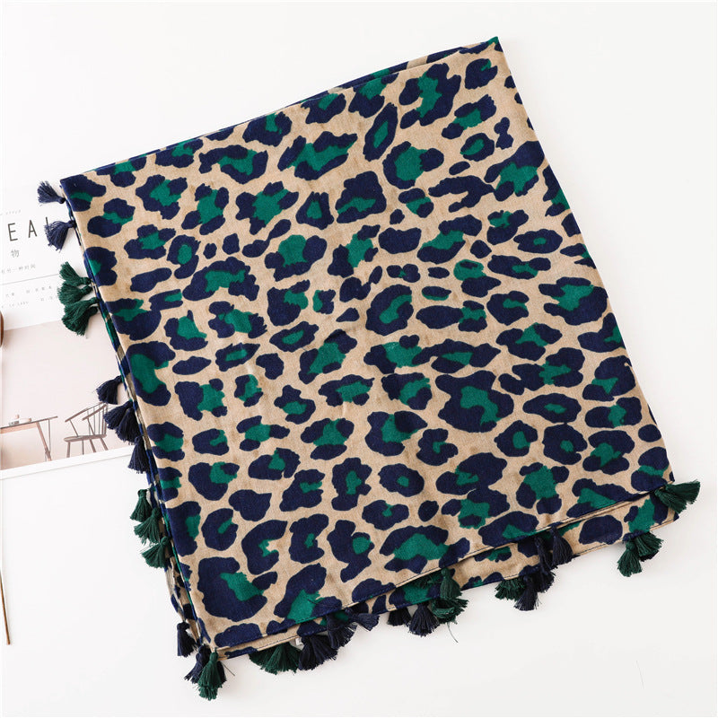 Classic Blue Leopard Cotton Linen Scarf Shawl for Women