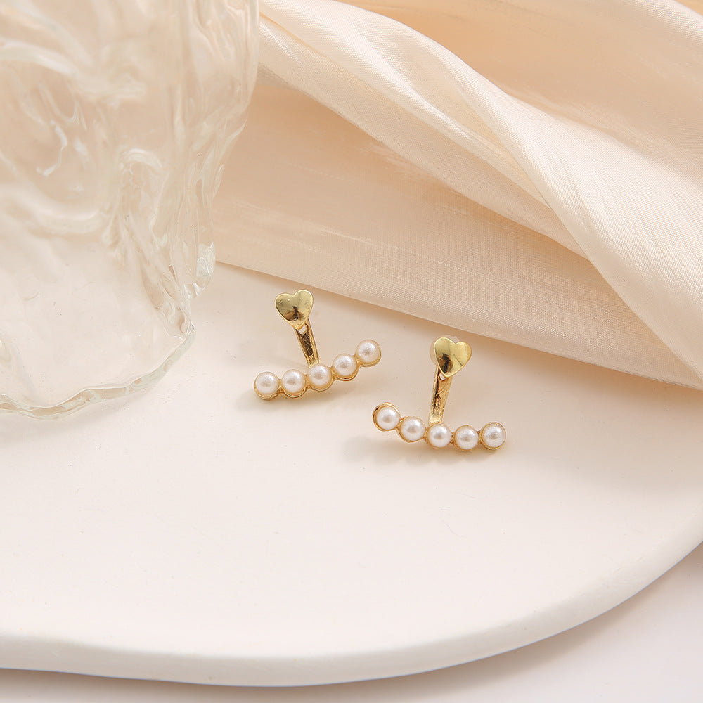 Creative Fashion French Arc Pearl Heart Drop Earrings in S925 Sterling Silver