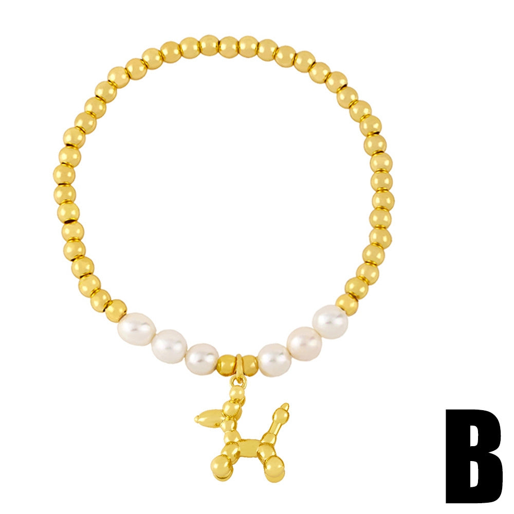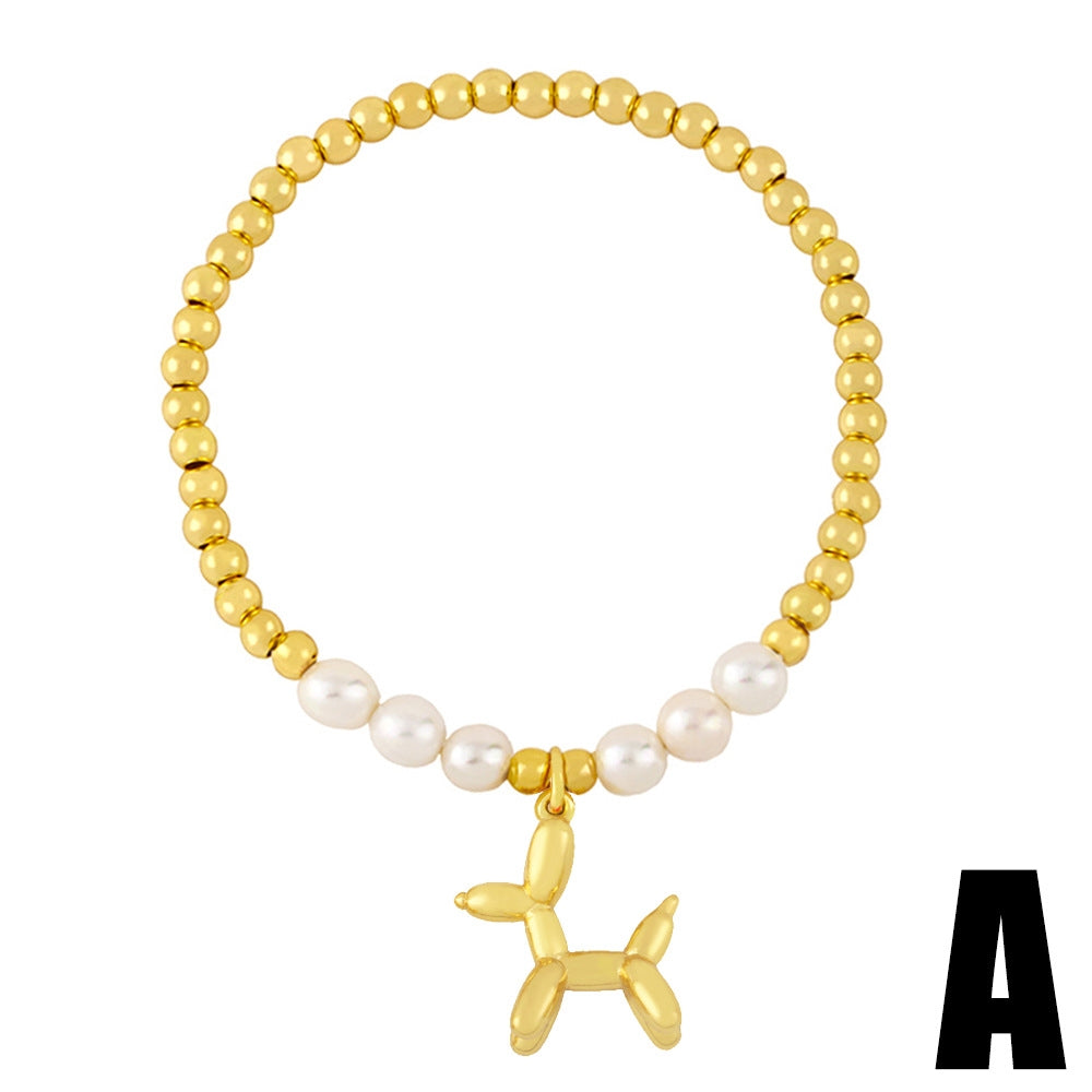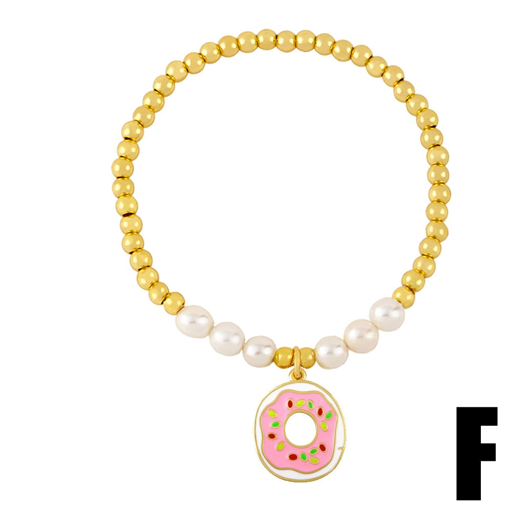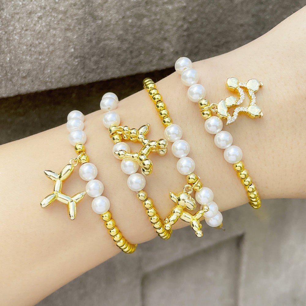 Creative Pearl Bracelet with Donut Cake and Balloon Dog Pendant Jewelry