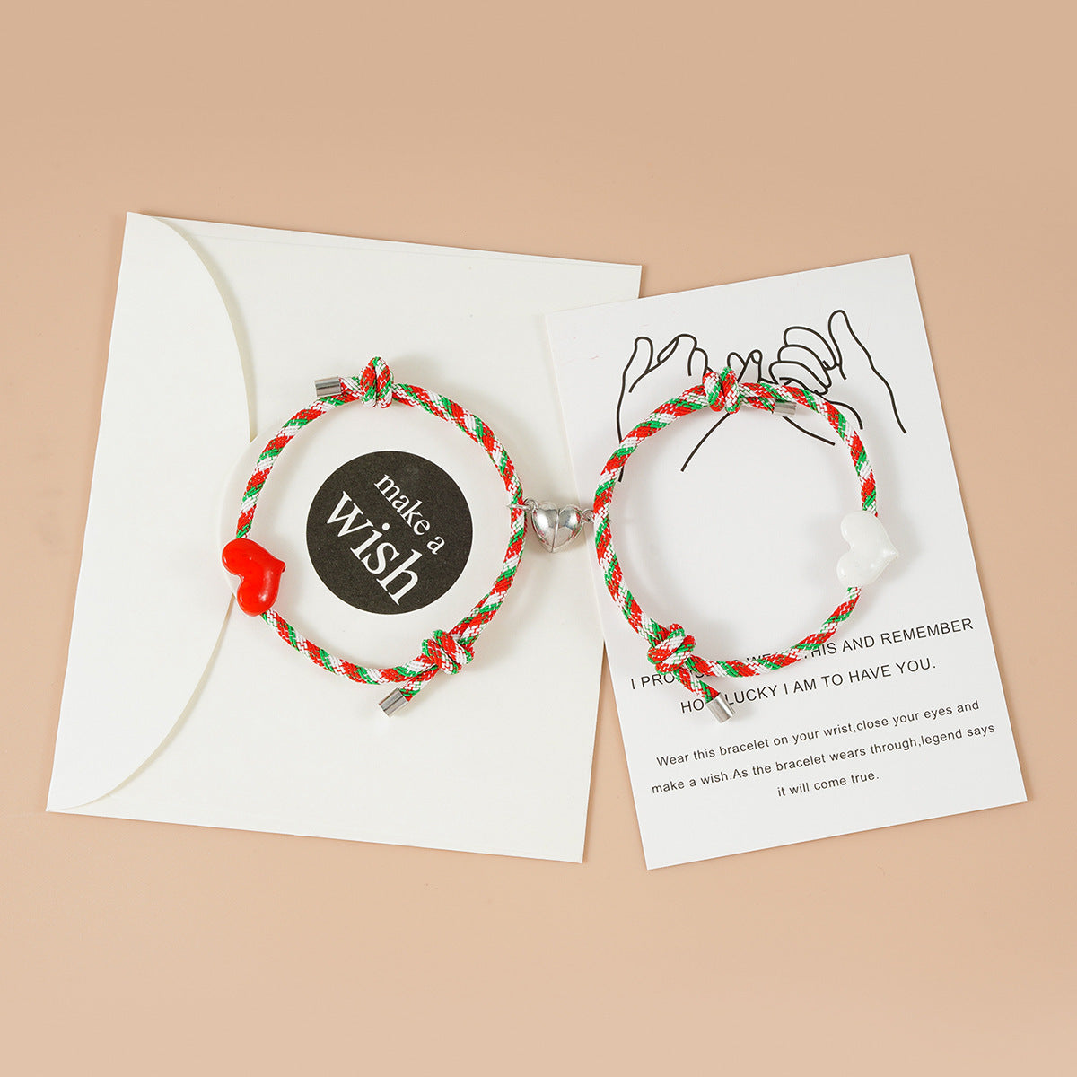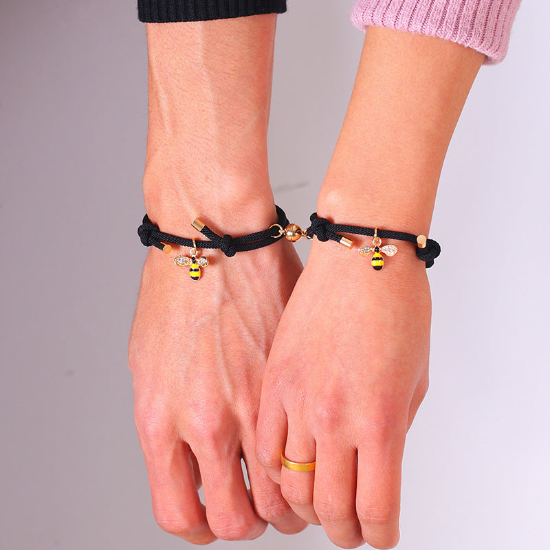 Cute Animal Magnetic Heart Couple Bracelets - Stainless Steel & Adjustable Rope Design