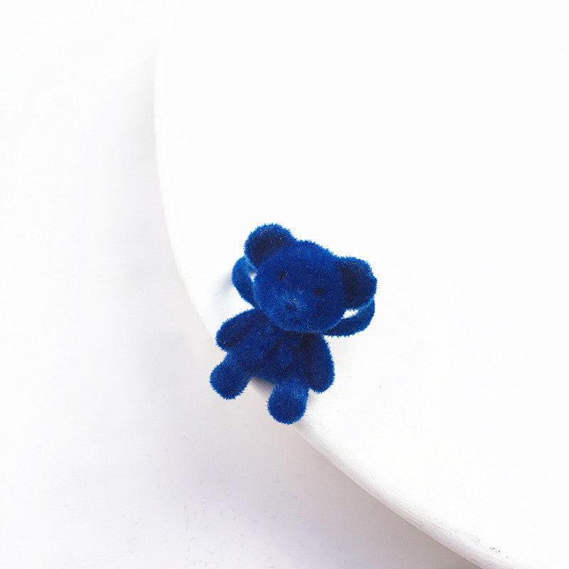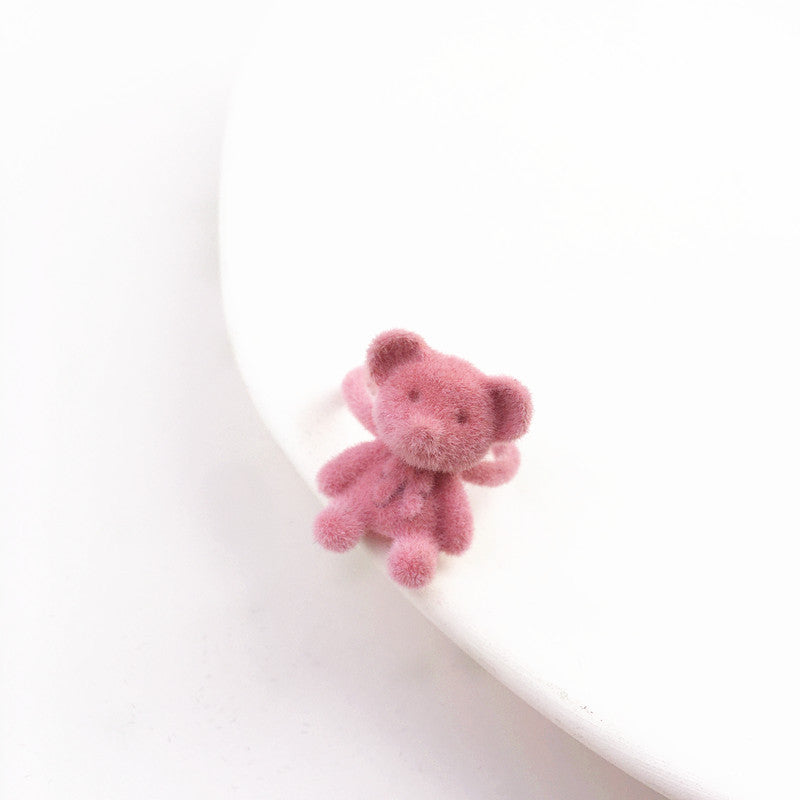 Cute Bear Velvet Bow Adjustable Open Ring for Women