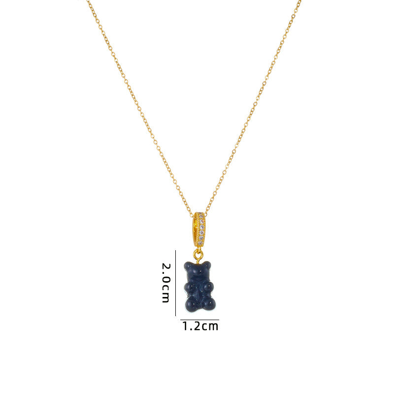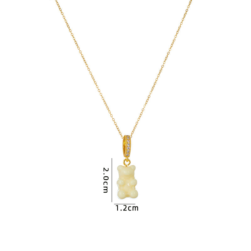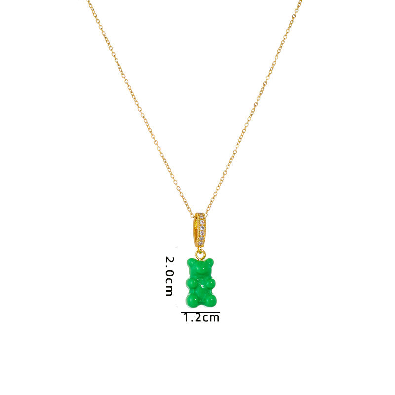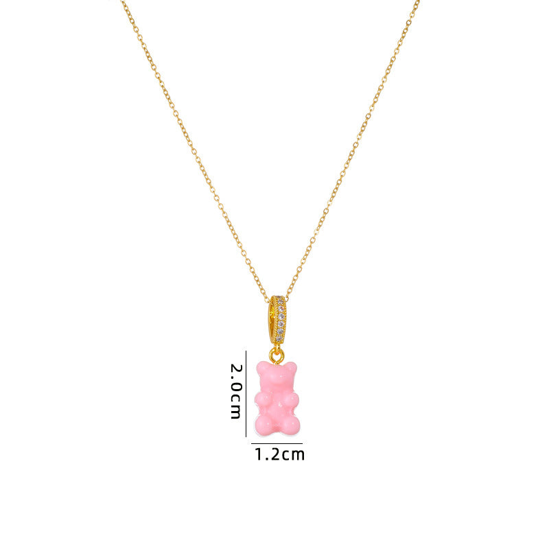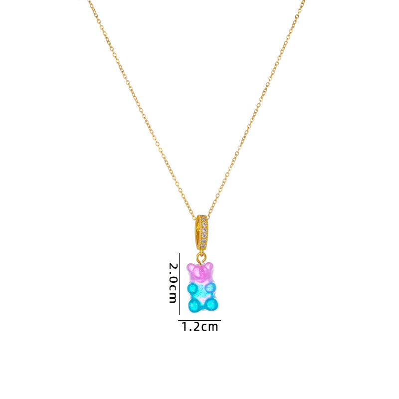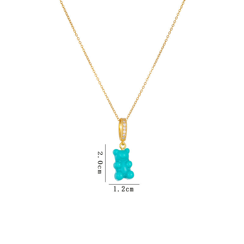 Colorful Bear Resin Zircon Pendant Necklace for Women and Men