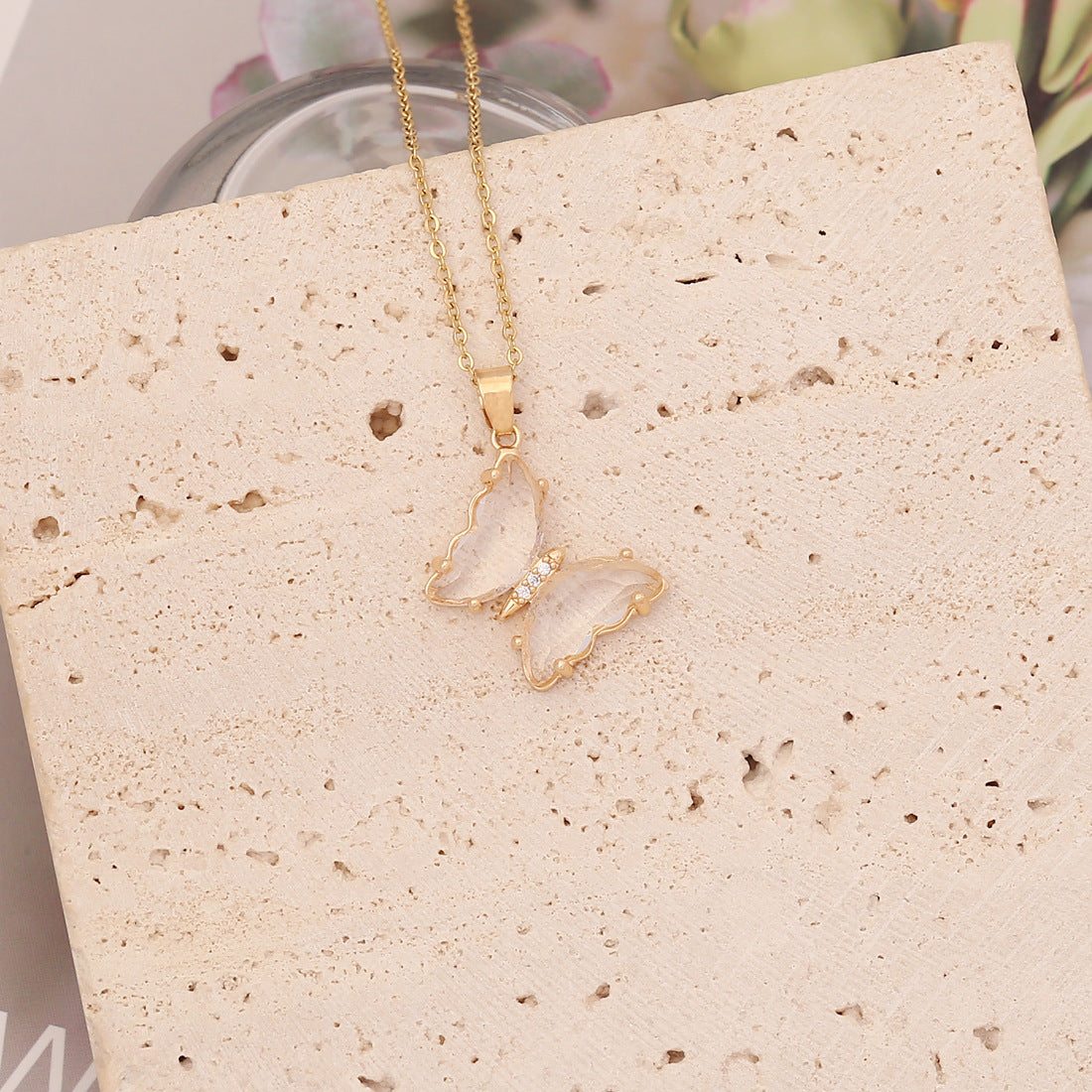 Butterfly Multicolor Stainless Steel Pendant Necklace - Fashionable Clavicle Chain