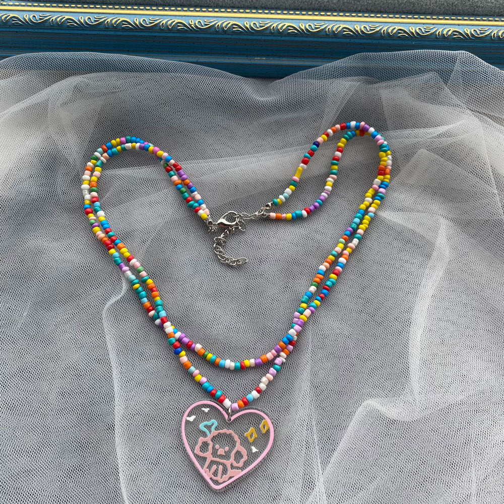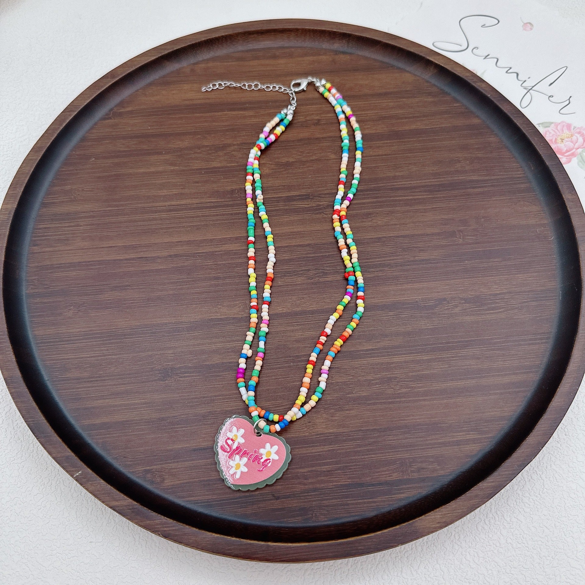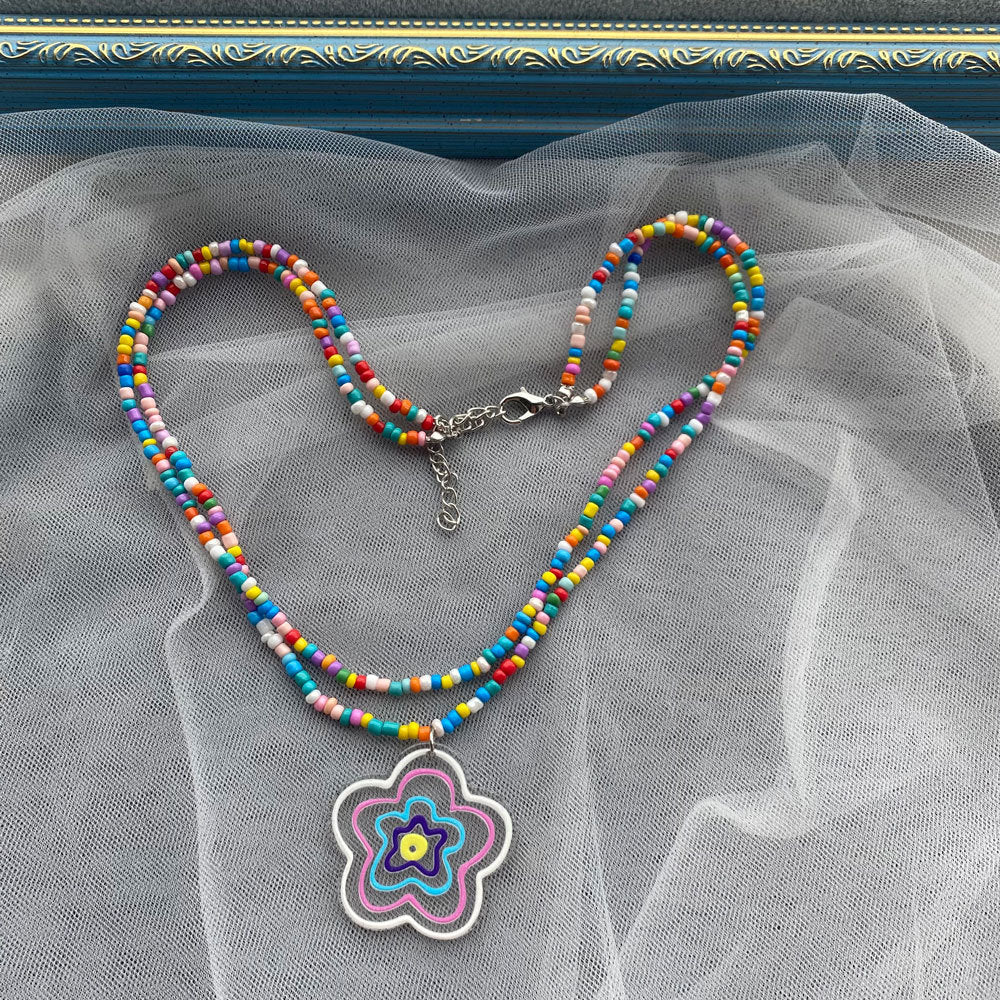 Colorful Flower Butterfly Beaded Pendant Necklace for Women